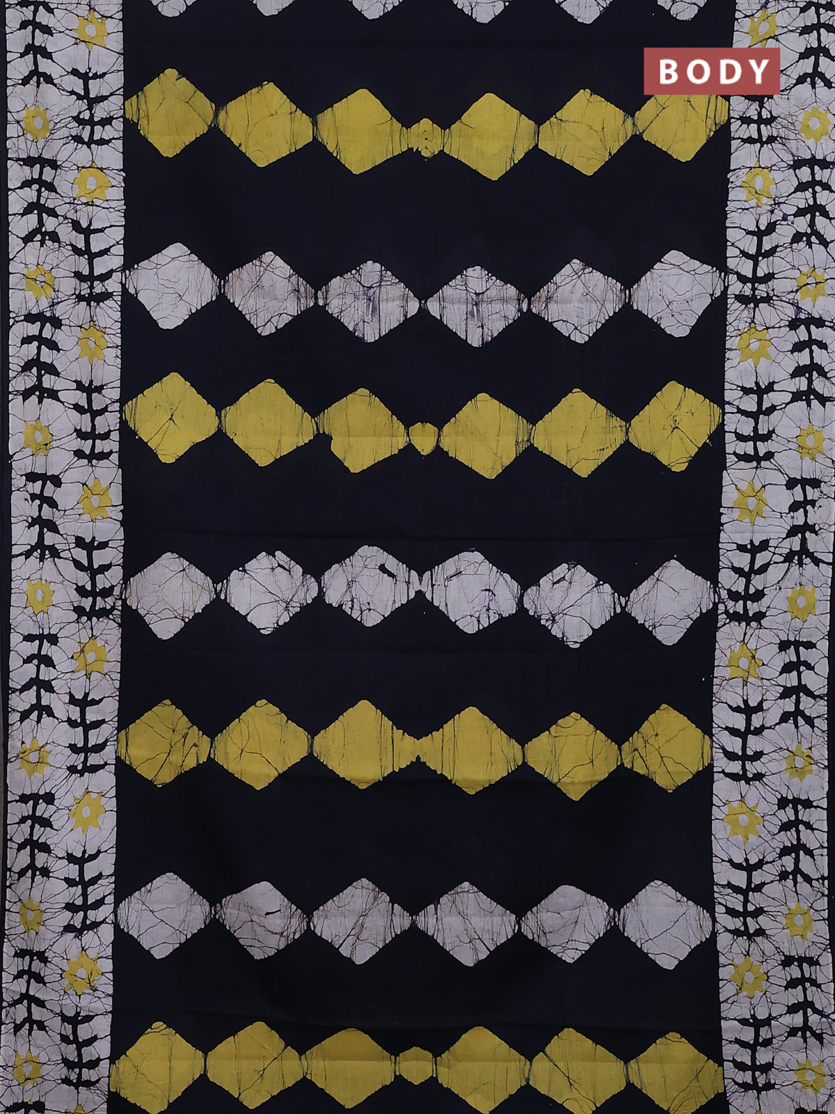 Jaipur cotton saree navy blue and off white with allover batik prints and printed border
