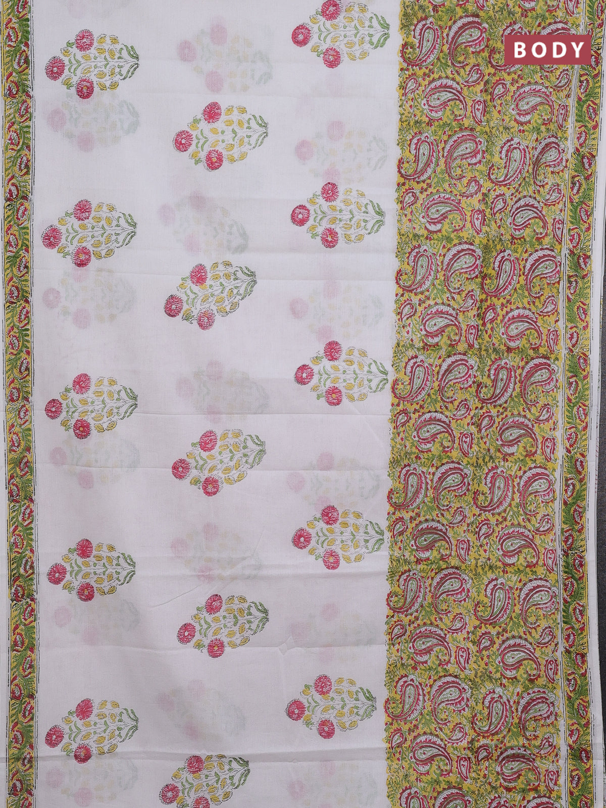 Jaipur cotton saree off white and yellow with allover prints and printed border