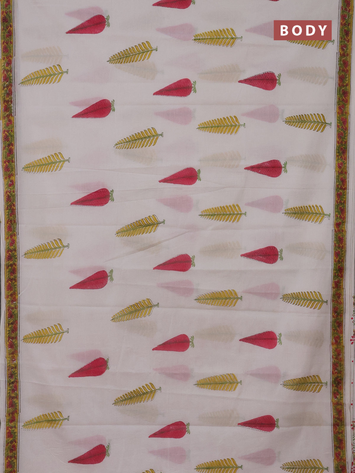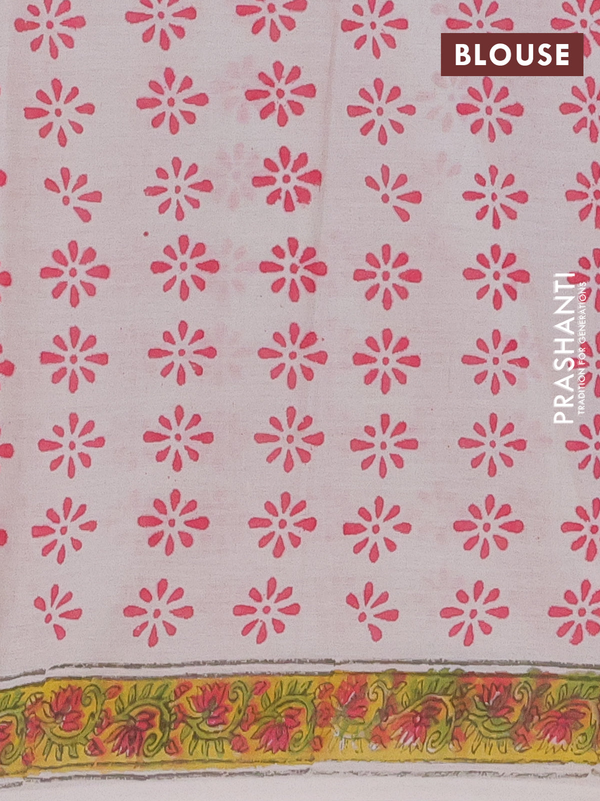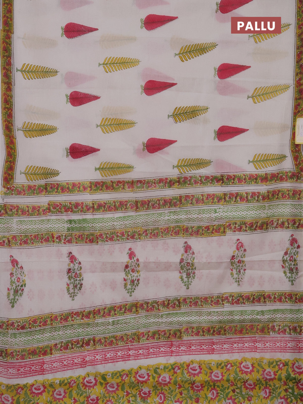 Jaipur cotton saree off white and yellow with butta prints and printed border