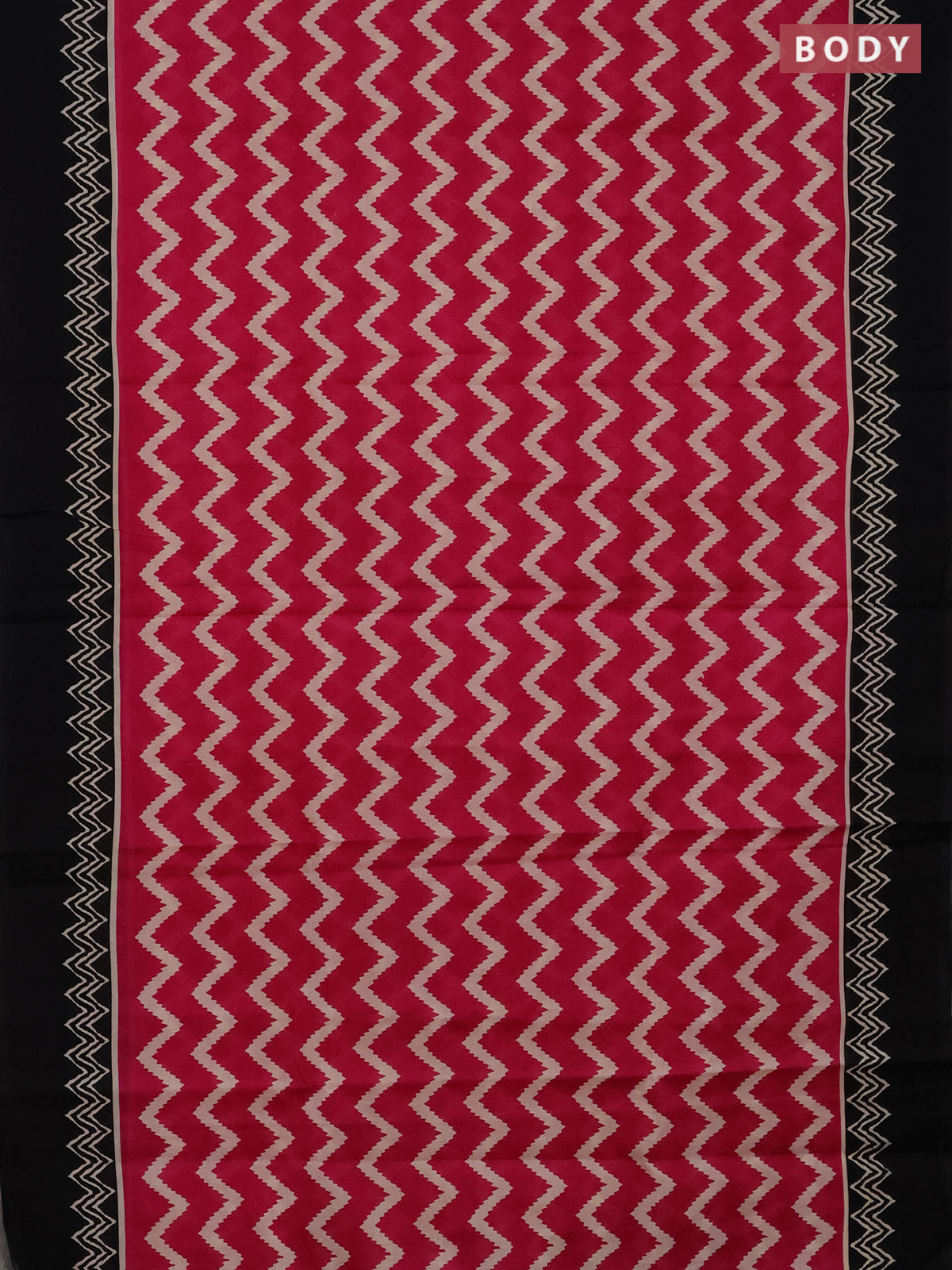 Jaipur cotton saree pink and black with allover zig zag prints and printed border