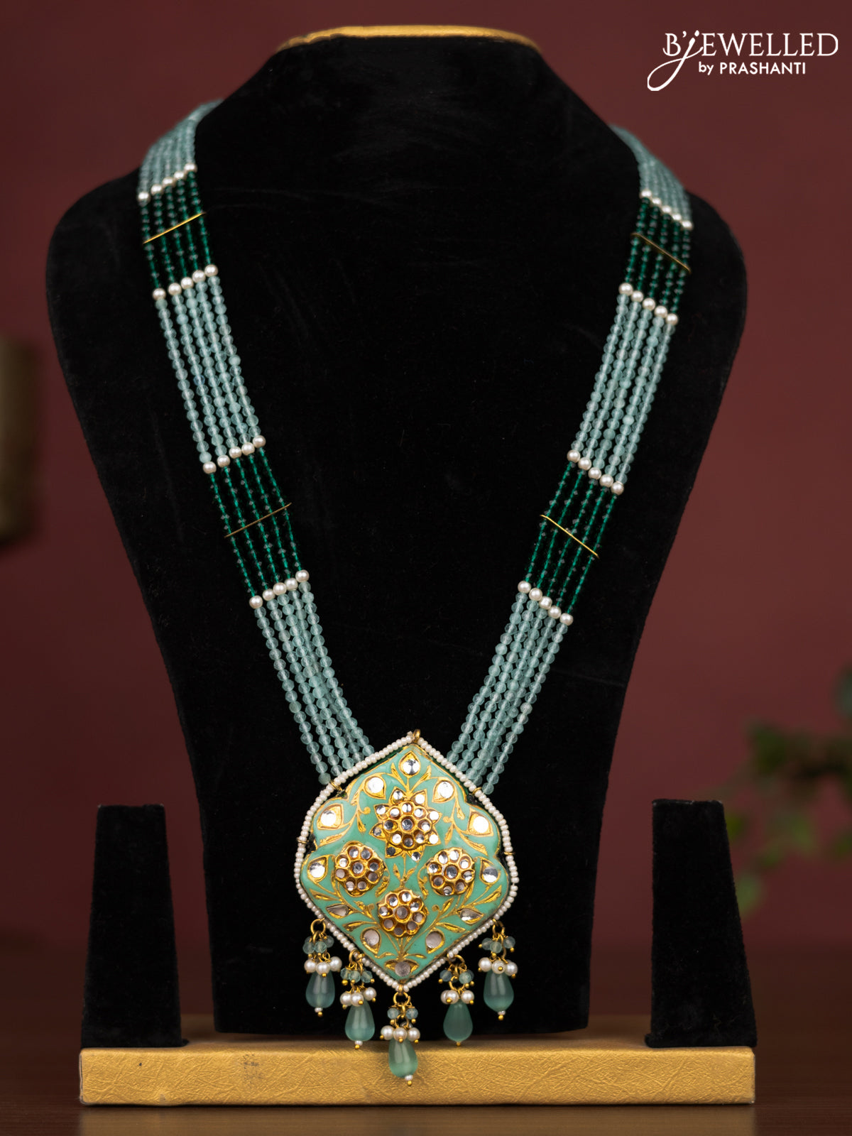 Jaipur crystal beaded light blue length necklace with minakari pendant and hangings without earrings
