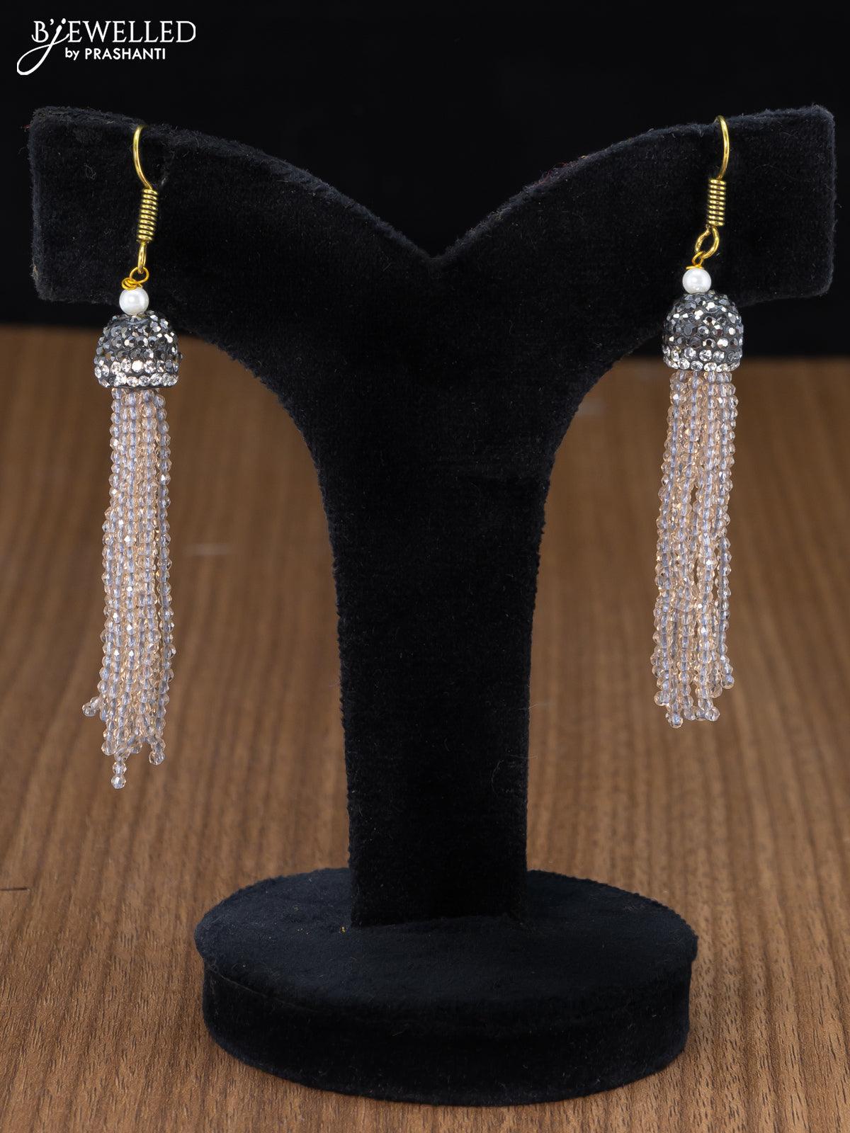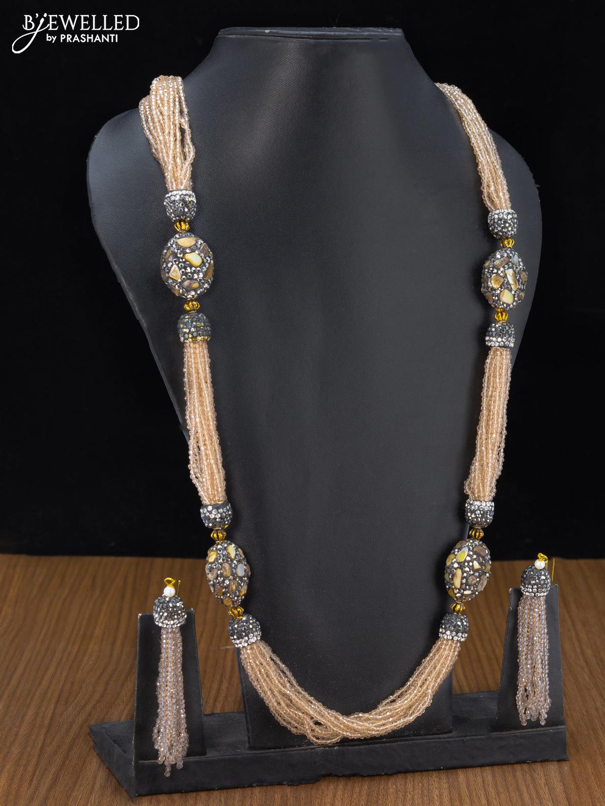 Jaipur crystal beaded mild chikku shade haaram with stones pendant