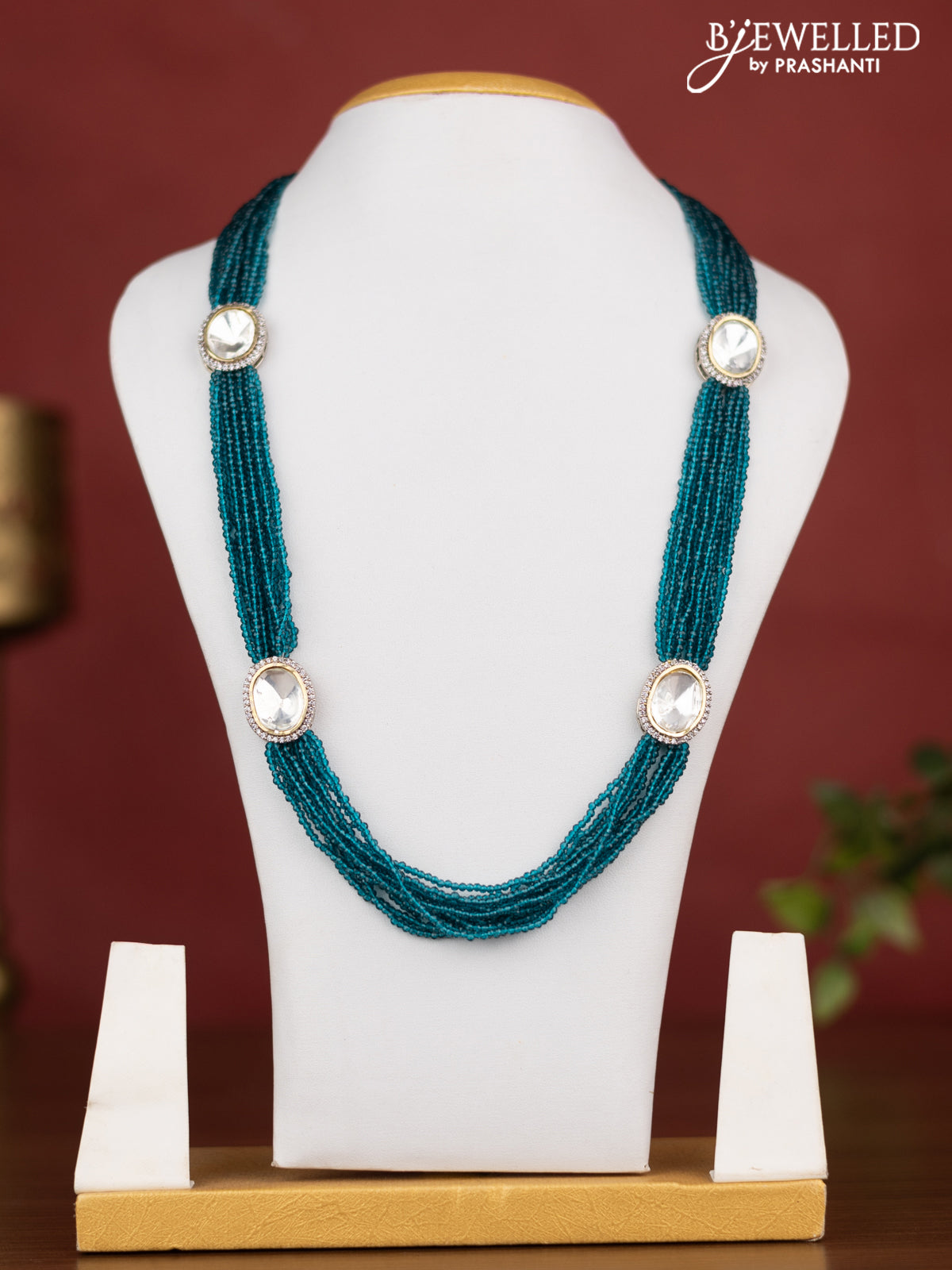 Jaipur crystal beaded multilayer green haaram with cz stones pendant without earrings