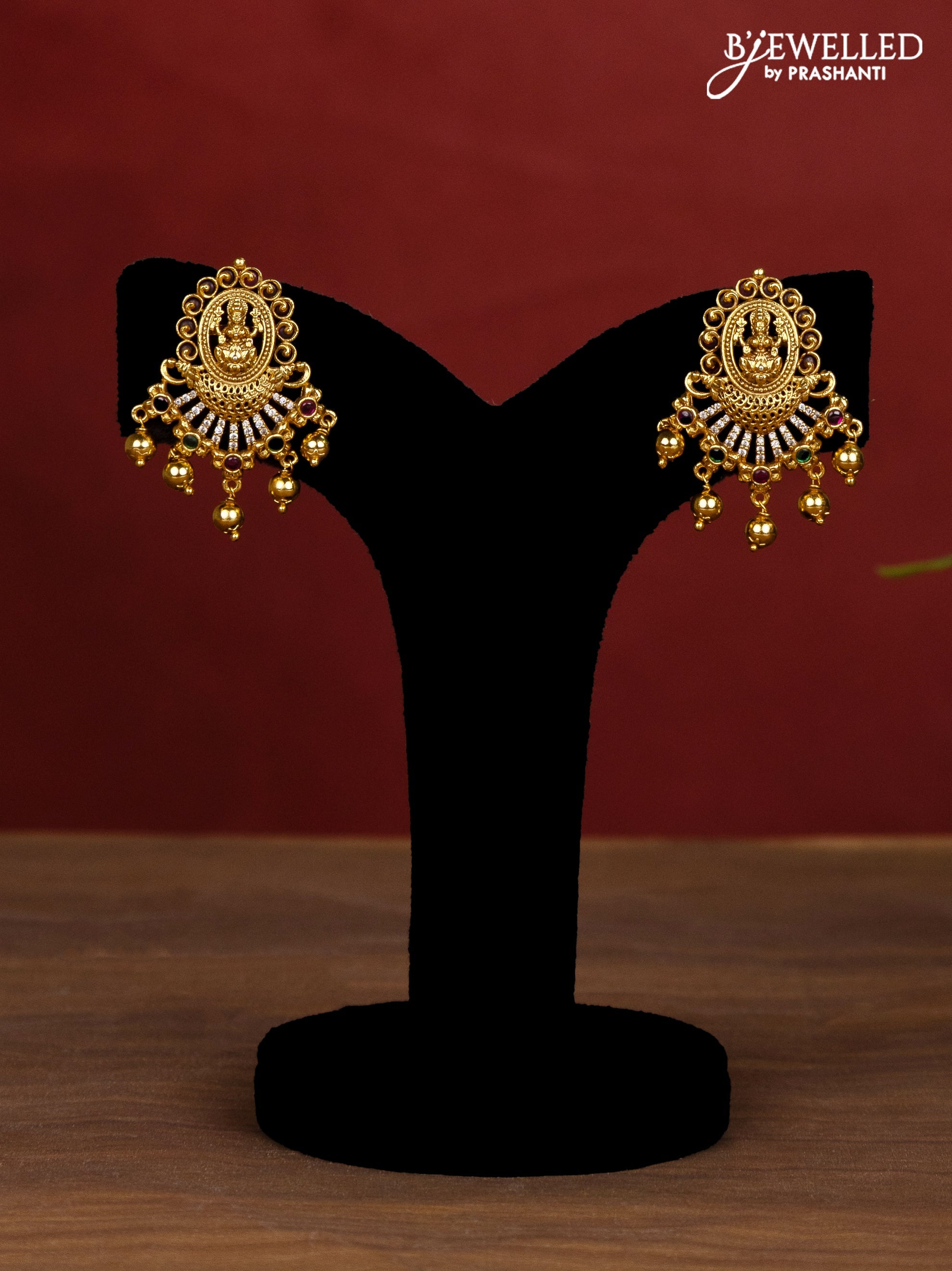 Jaipur crystal beaded multilayer red necklace with lakshmi pendant