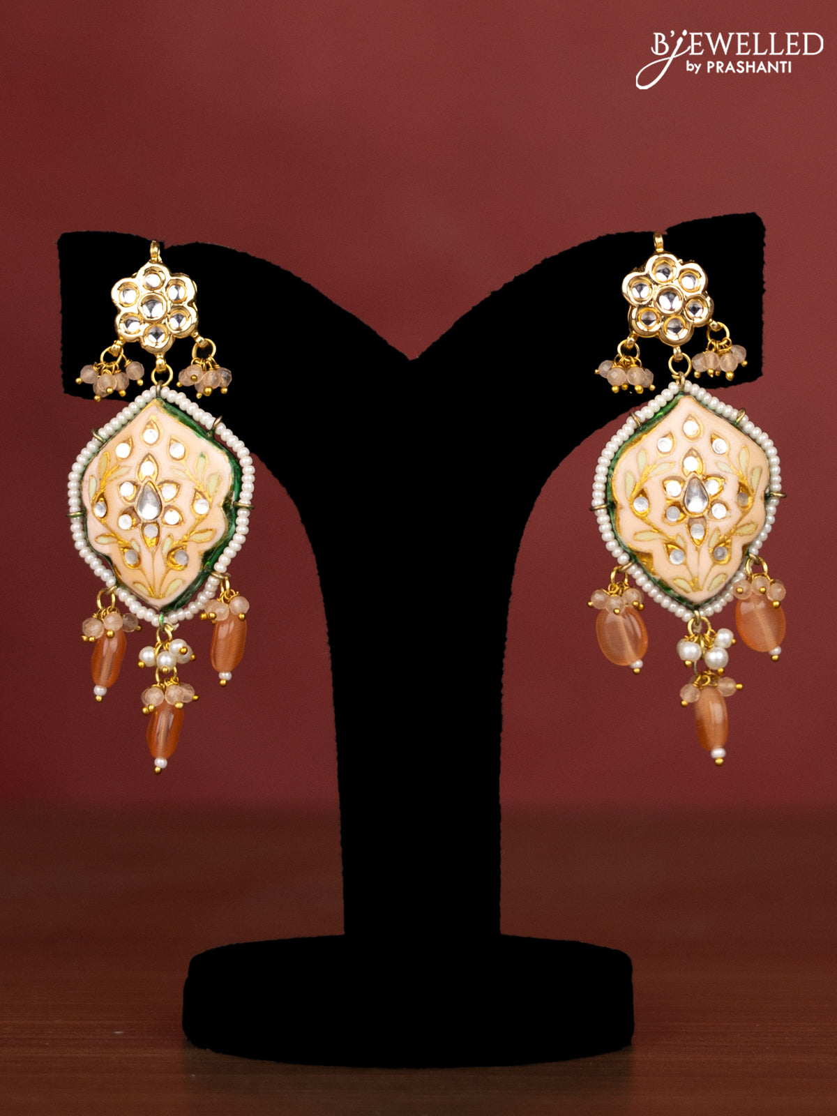 Jaipur crystal beaded peach length necklace with minakari pendant and hangings