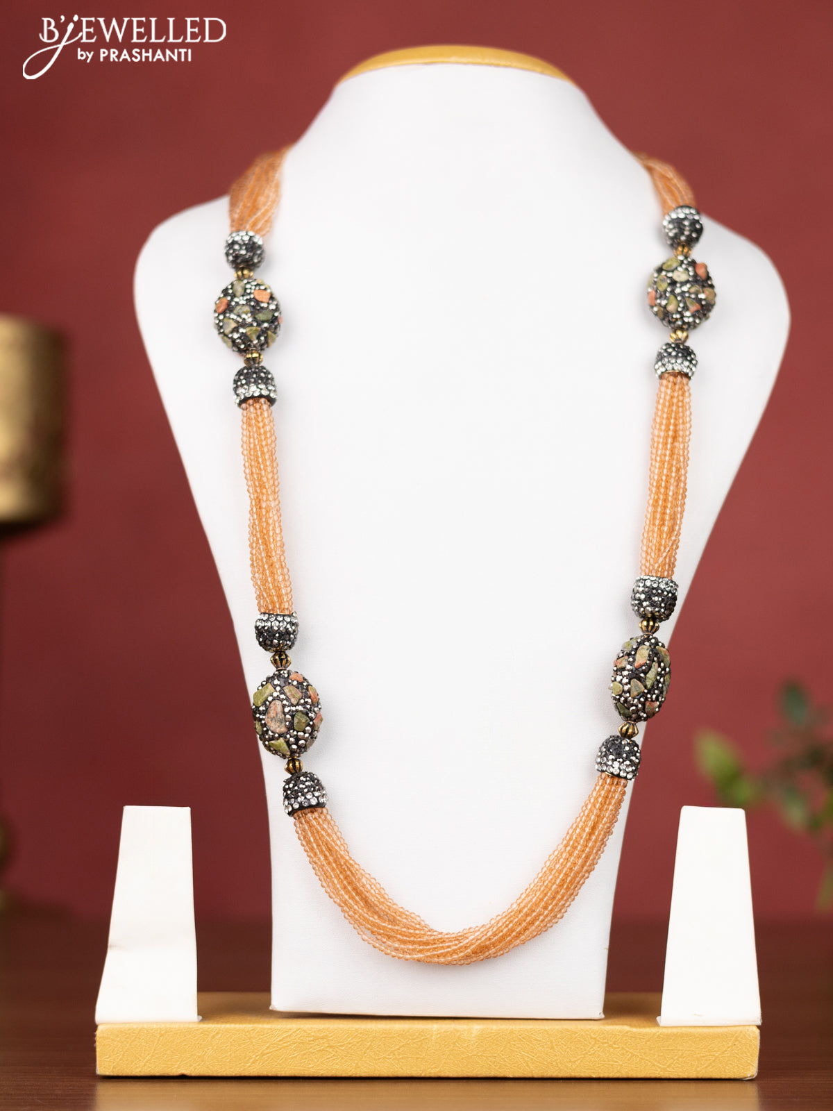 Jaipur crystal beaded peach necklace with green and grey stones without earrings