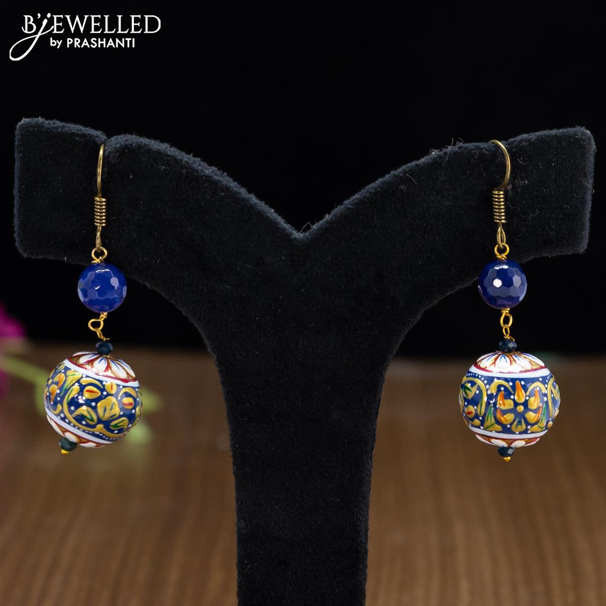 Jaipur navy blue crystal and pearls necklace with minakari balls