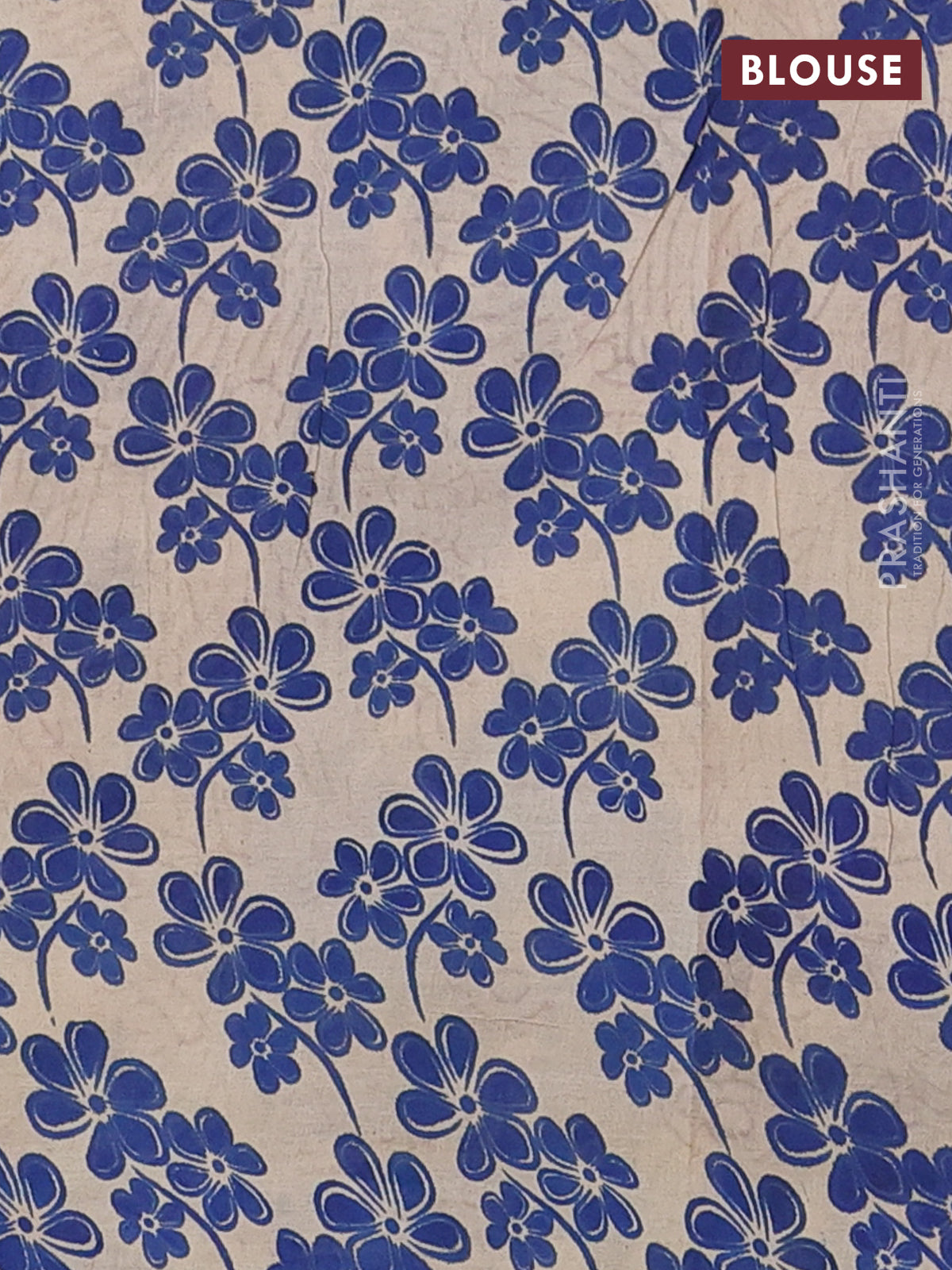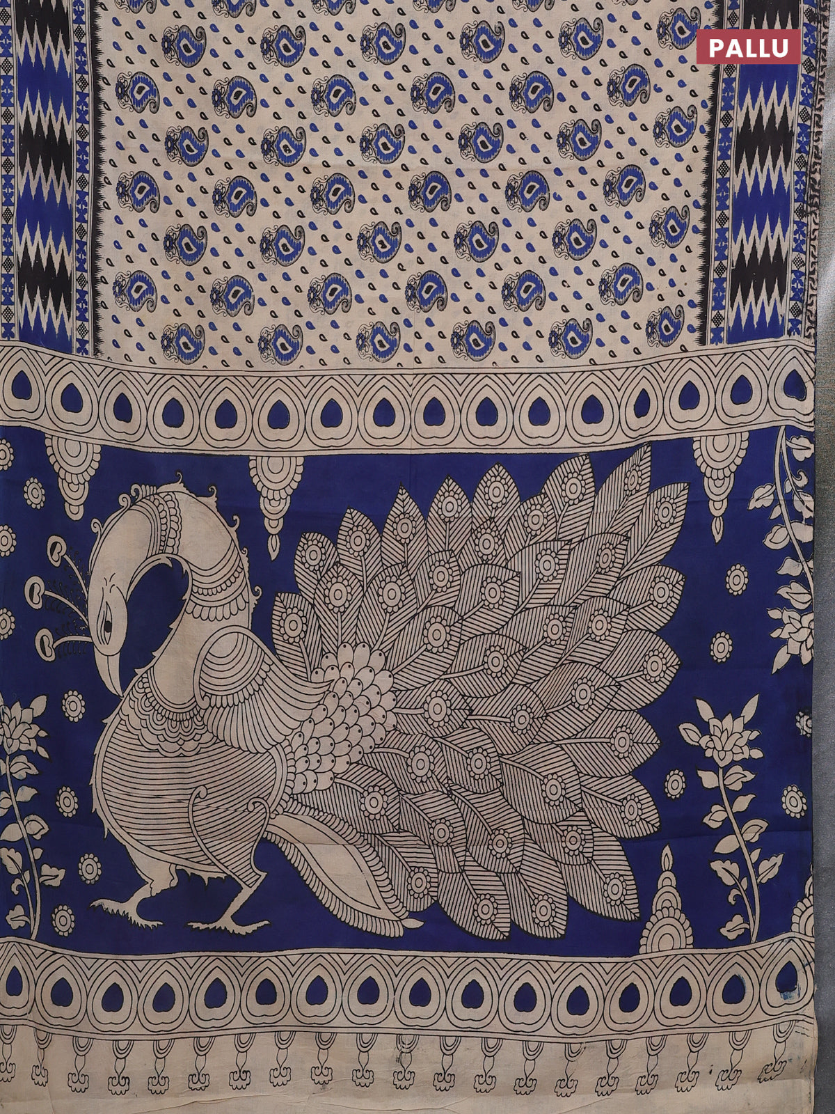 Kalamkari cotton saree beige and blue with allover paisley butta prints and printed border
