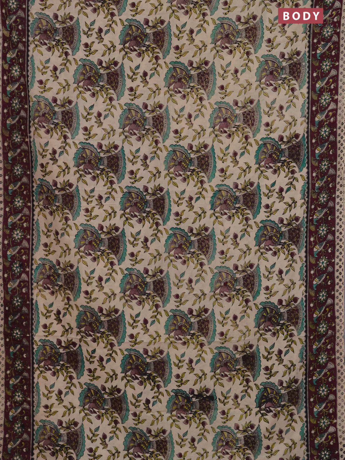 Kalamkari cotton saree beige and wine shade with allover prints and printed border