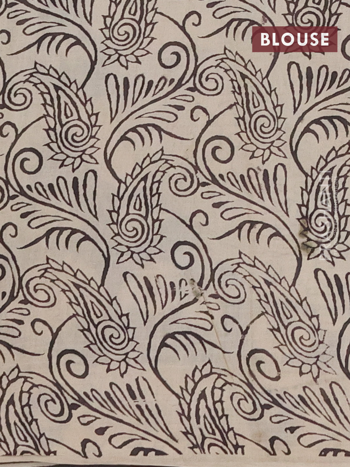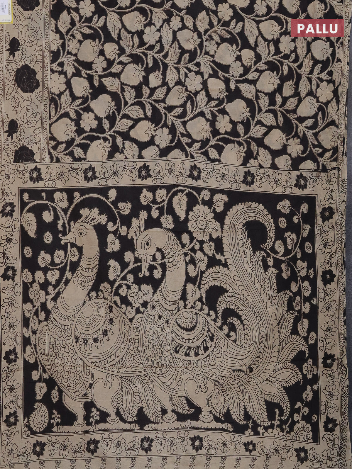 Kalamkari cotton saree black and beige with allover prints and printed border