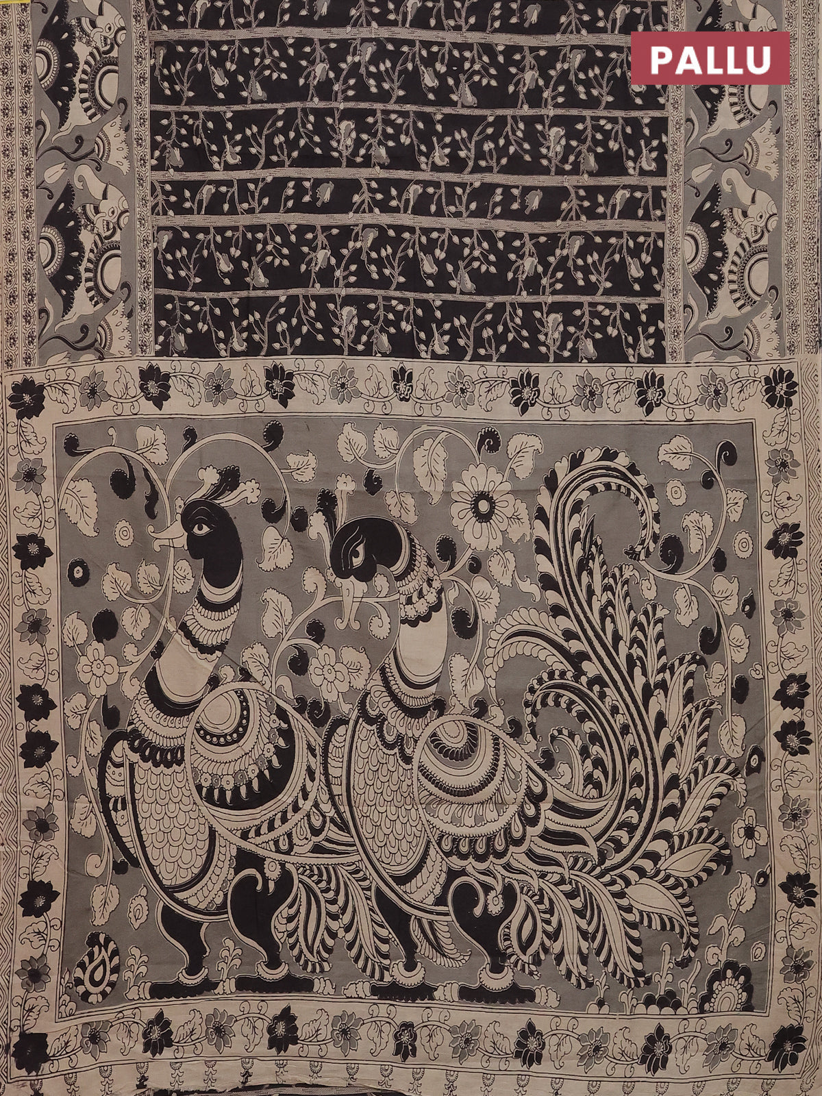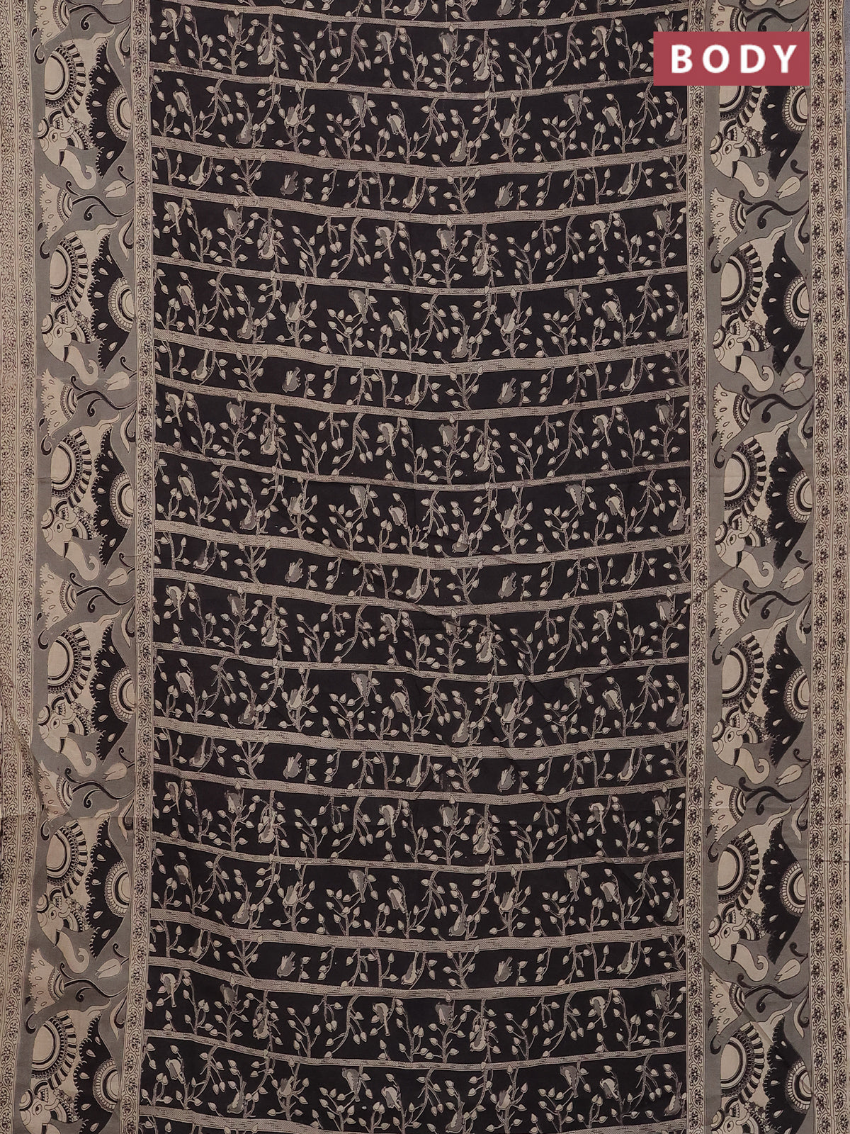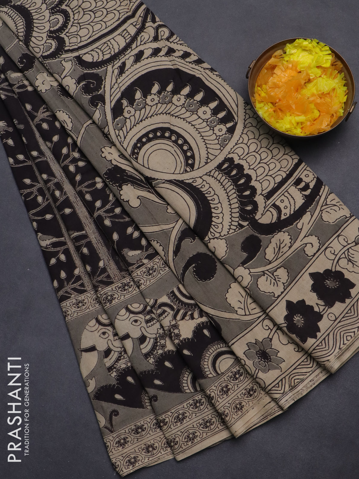 Kalamkari cotton saree black and grey with allover prints and printed border