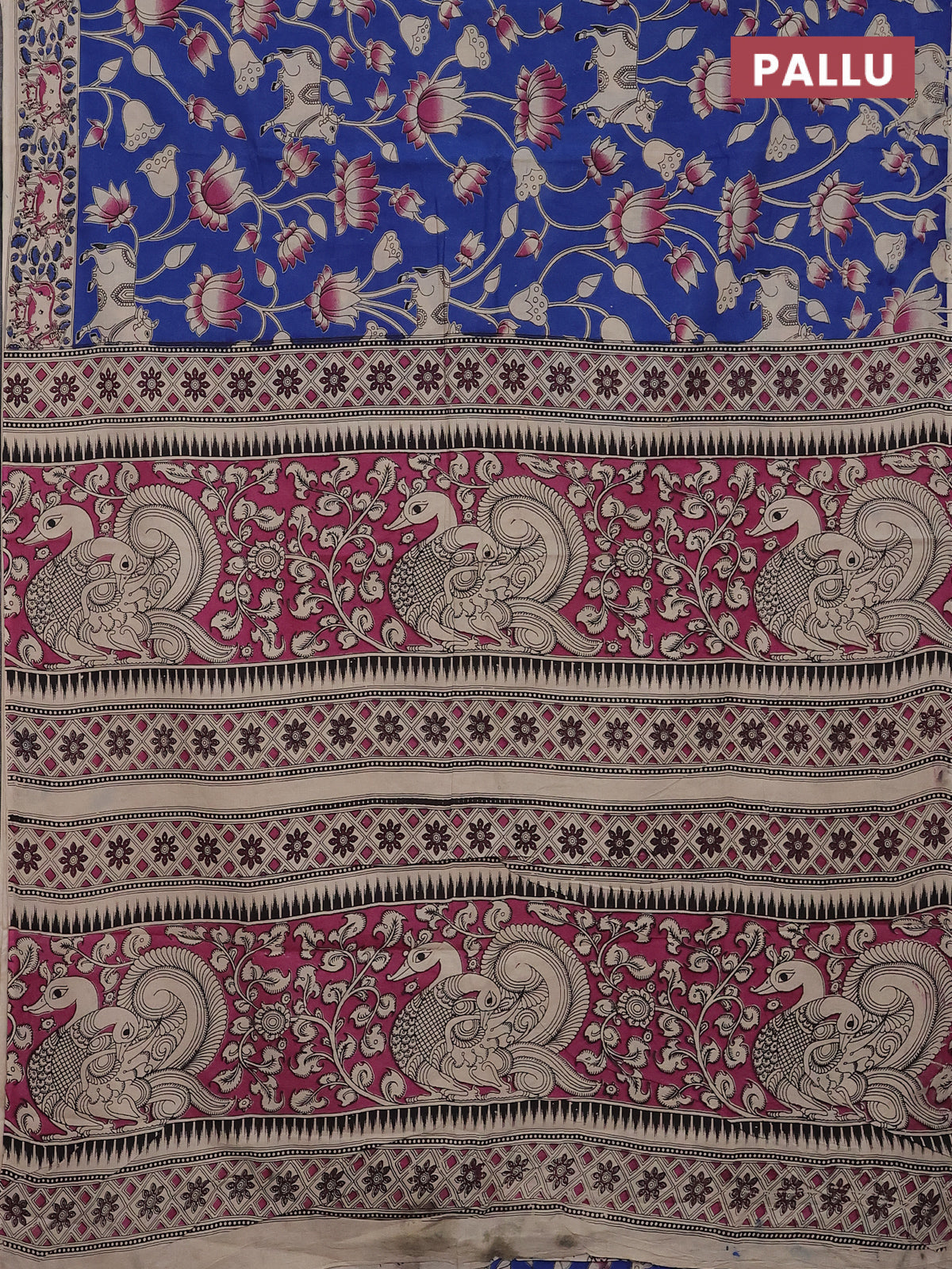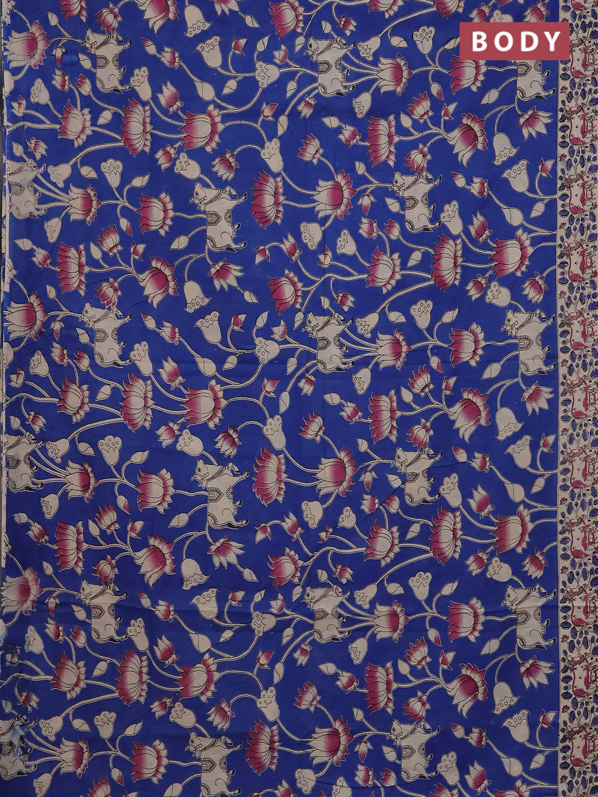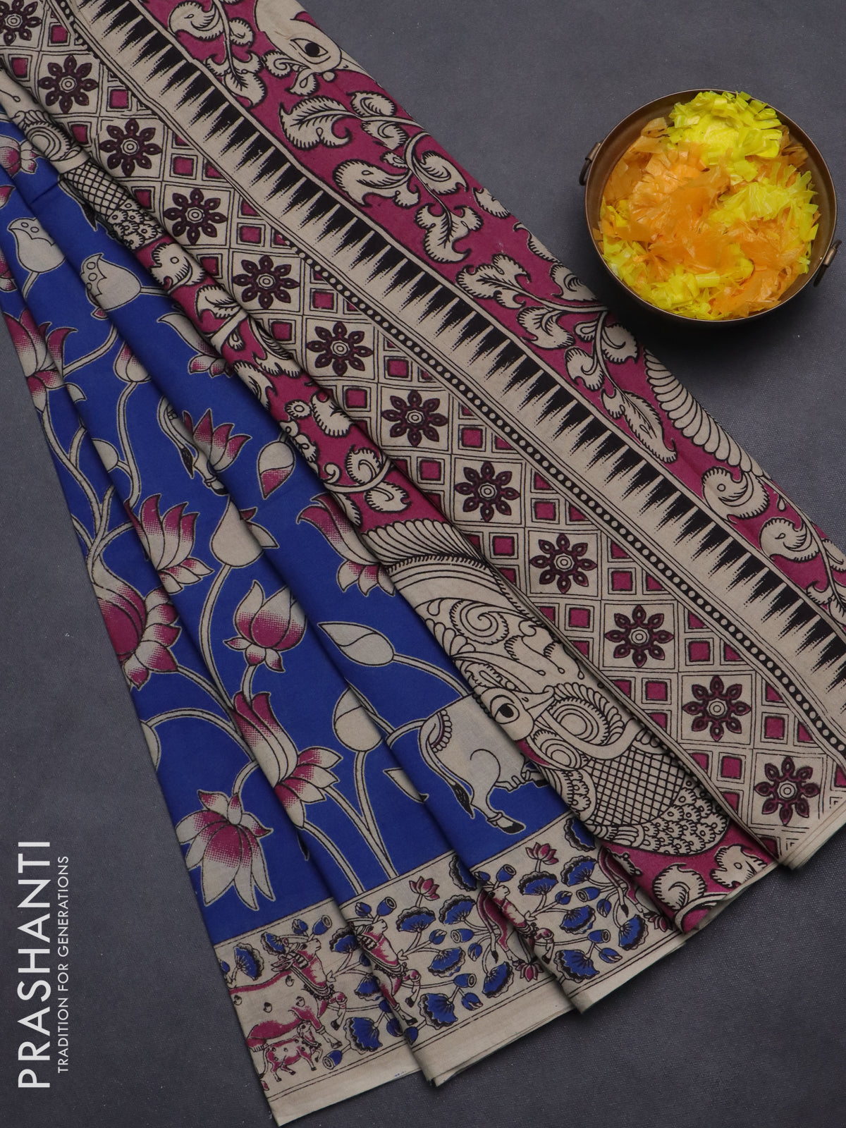 Kalamkari cotton saree blue and beige with pichwai prints and printed border