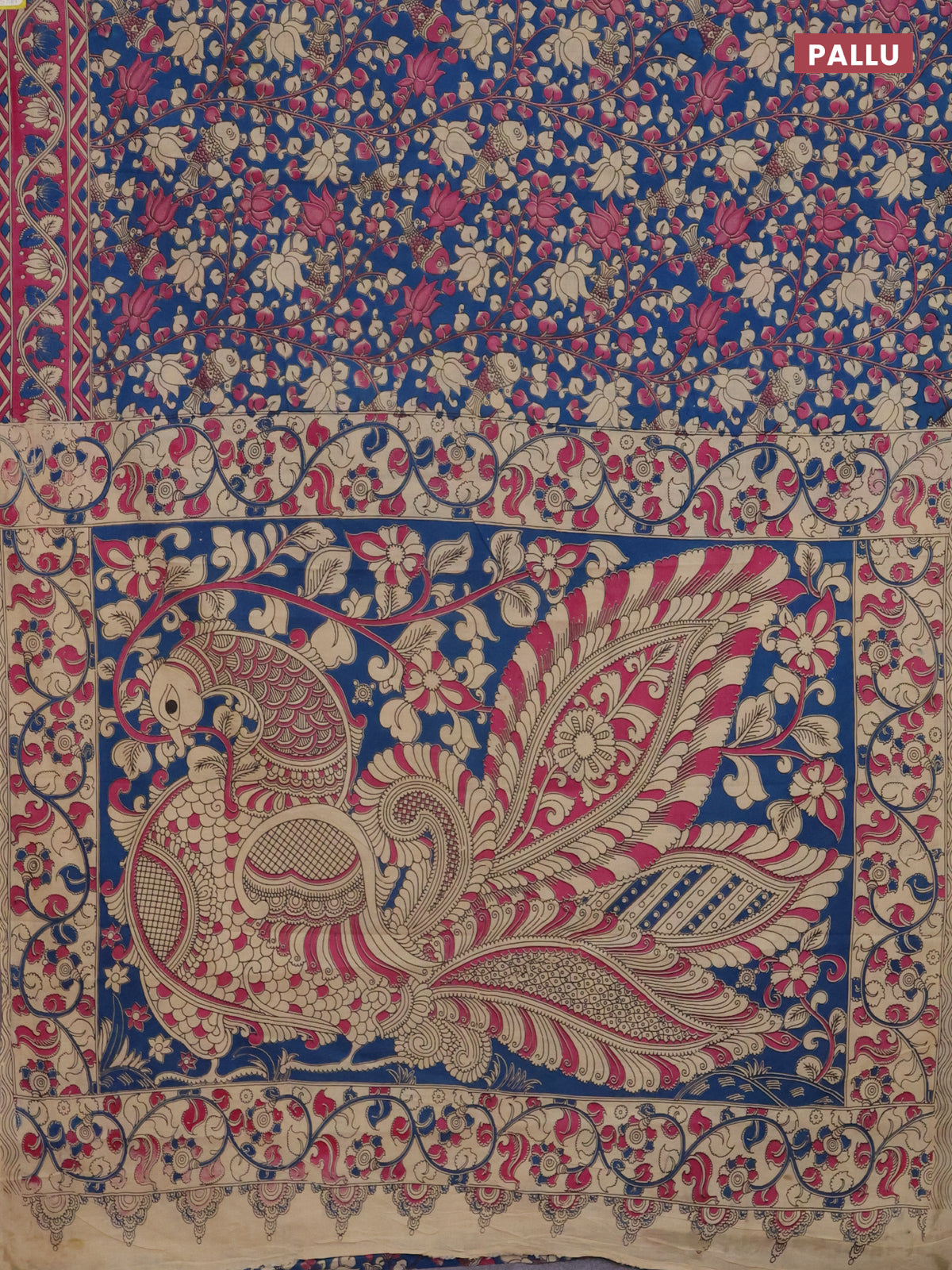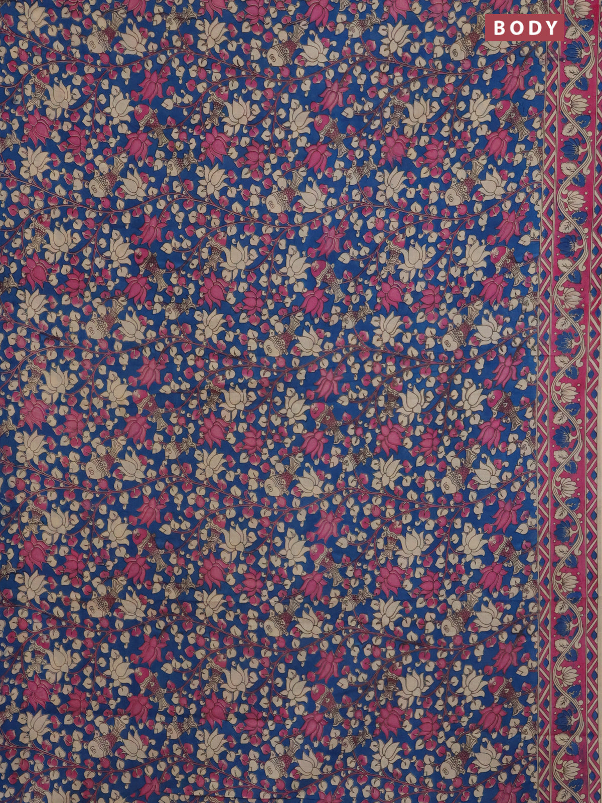 Kalamkari cotton saree blue and mauve pink with allover prints and printed border