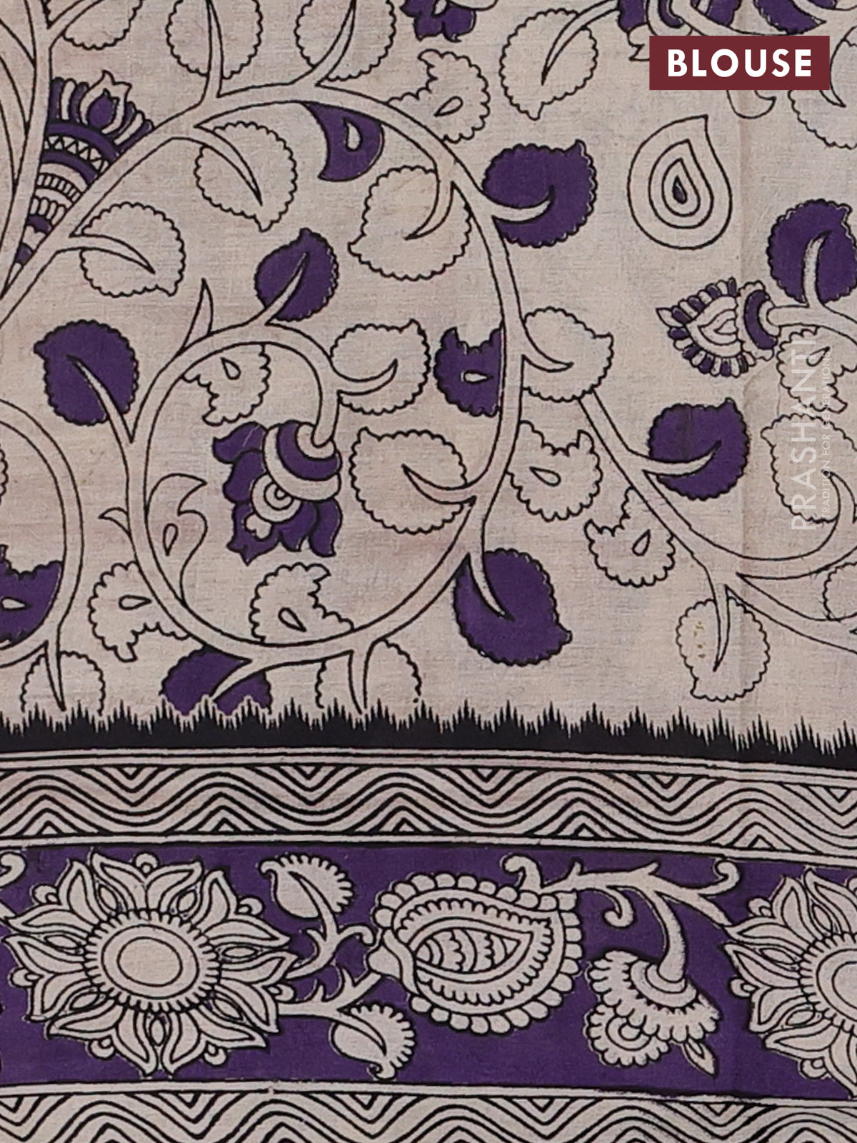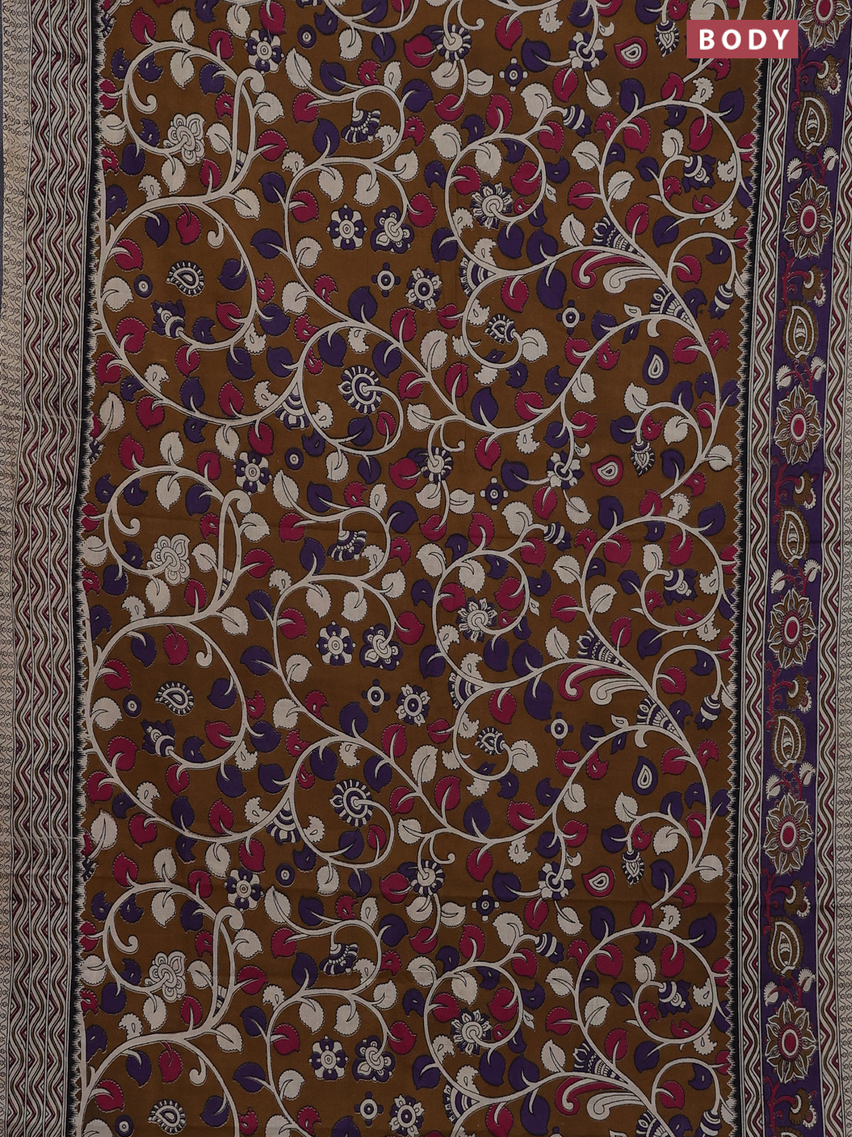 Kalamkari cotton saree brown and beige with allover prints and printed border