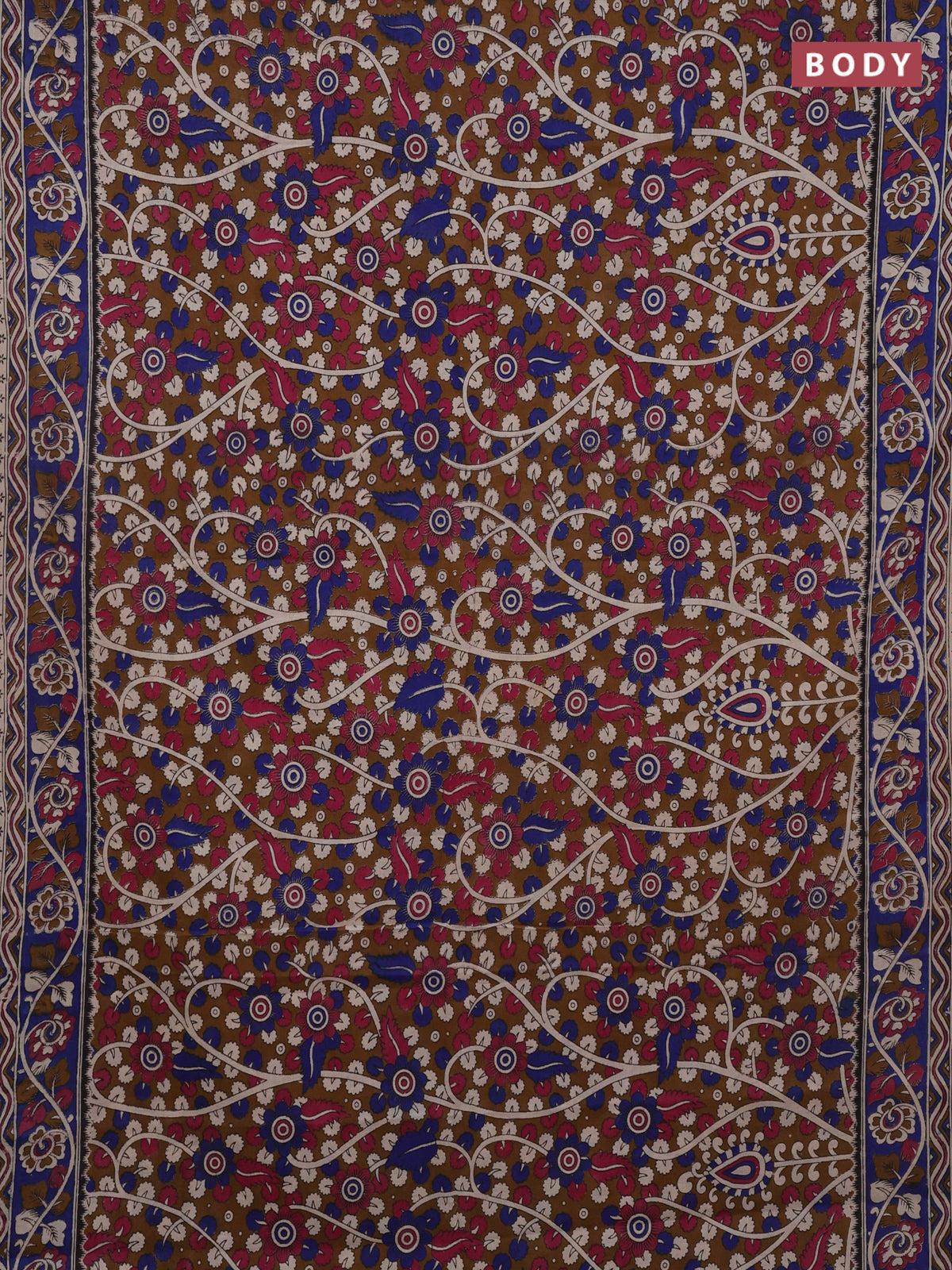 Kalamkari cotton saree brown and blue with allover prints and printed border