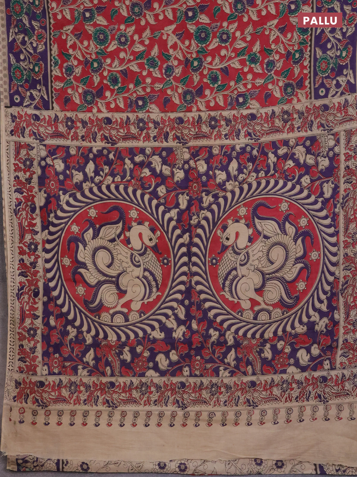 Kalamkari cotton saree maroon and deep violet with allover prints and printed border
