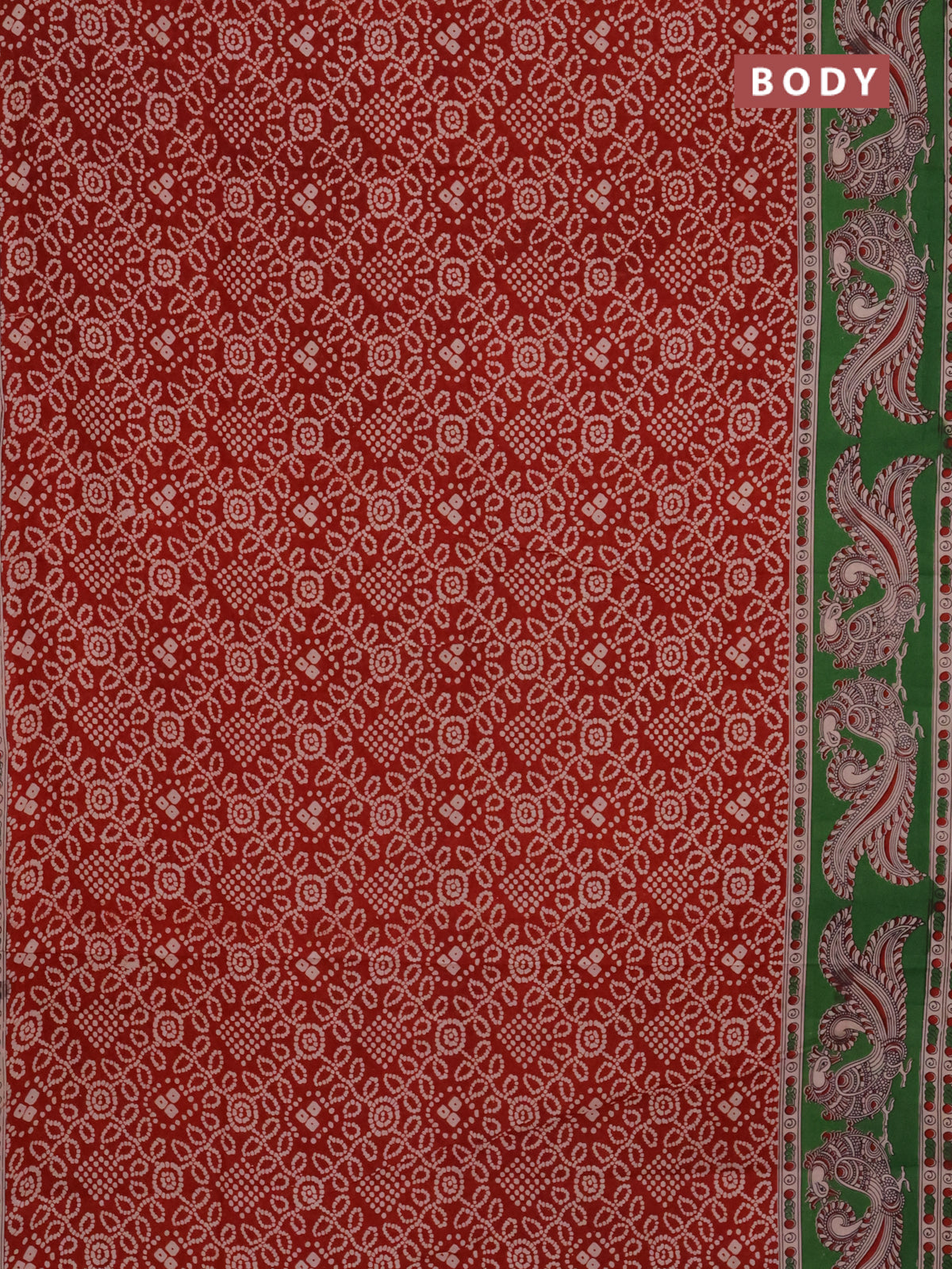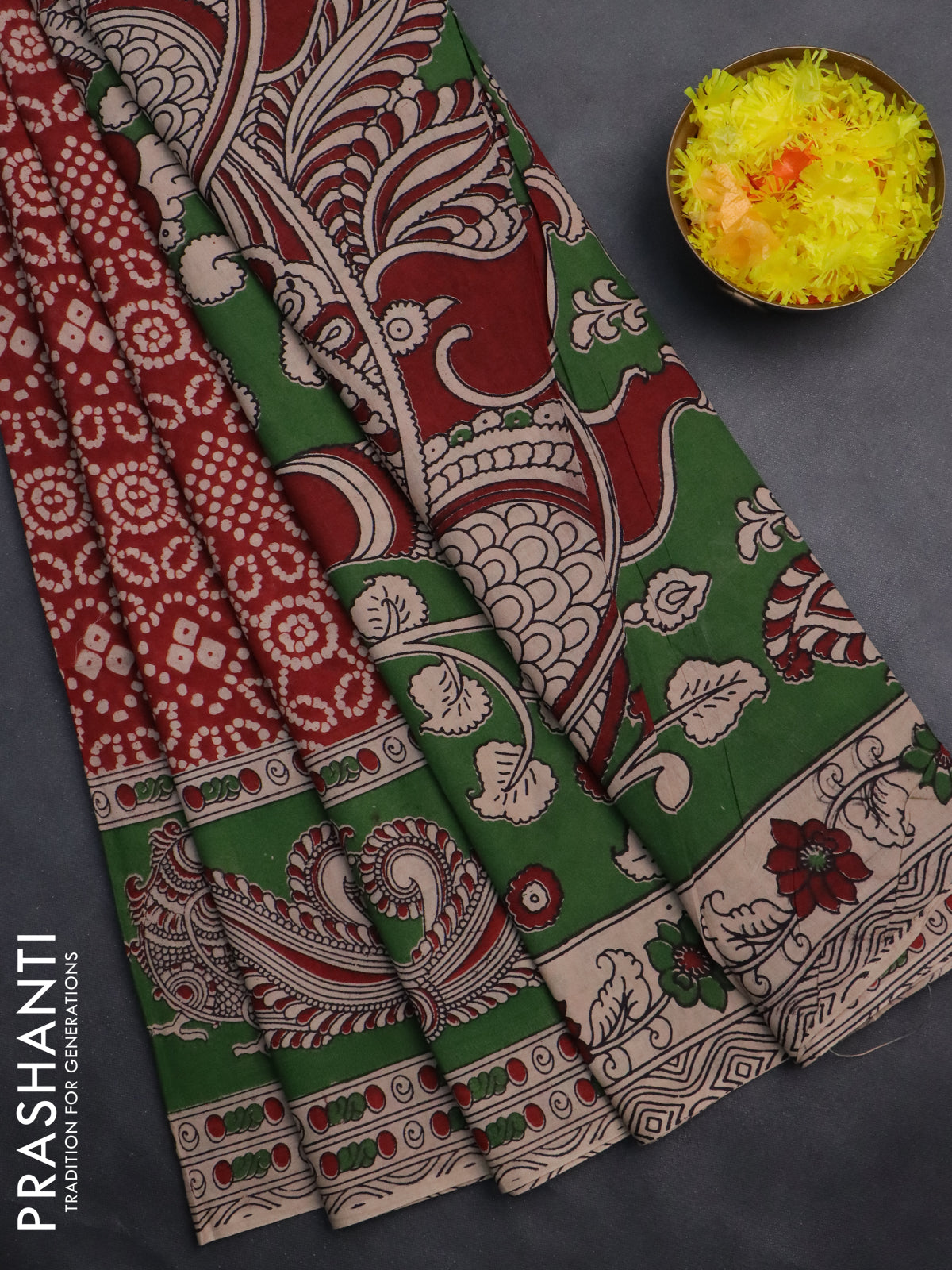 Kalamkari cotton saree maroon and green with allover bandhini prints and printed border