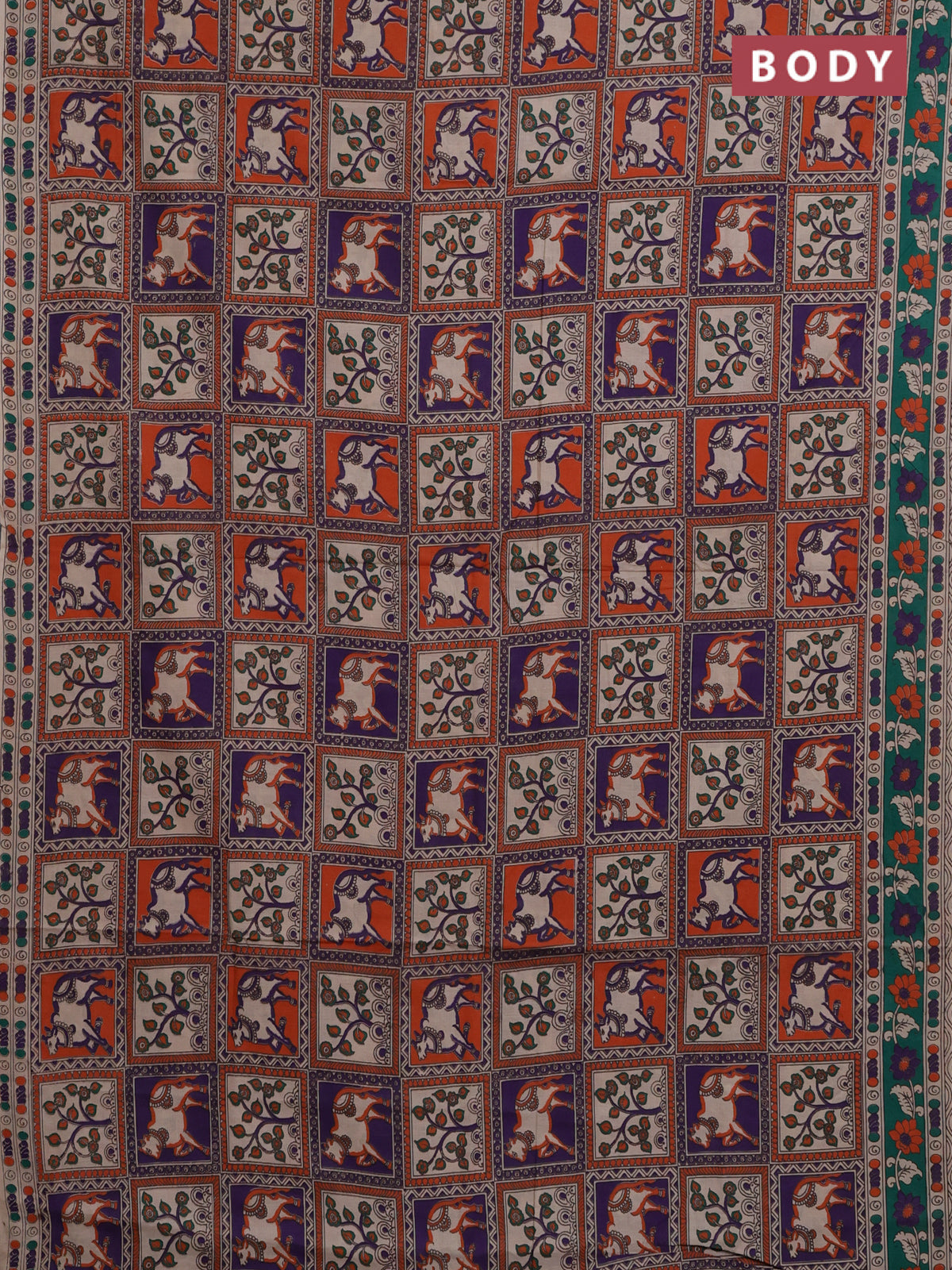 Kalamkari cotton saree multi colour and teal green with allover prints and printed border