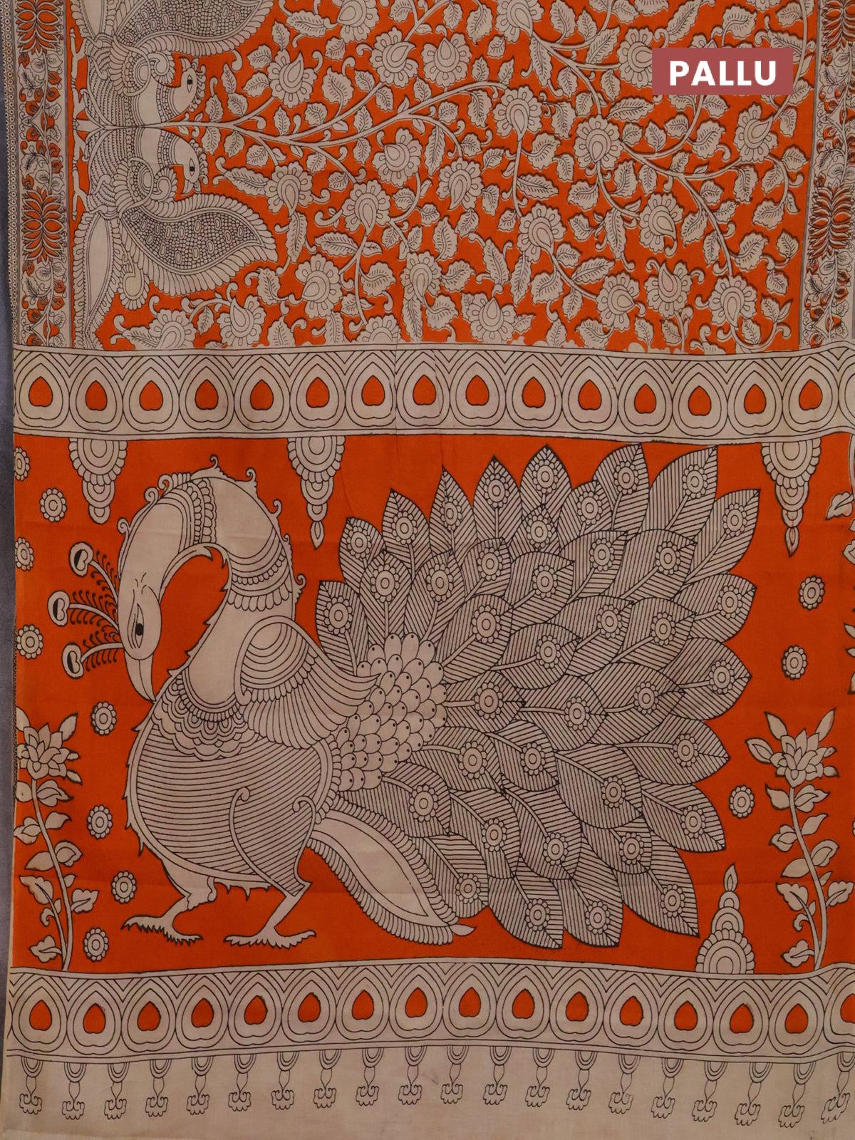 Kalamkari cotton saree orange and beige with allover prints and printed border