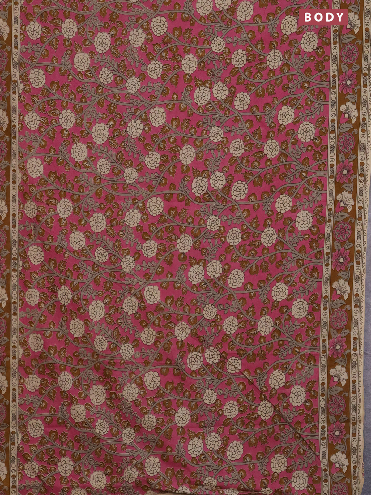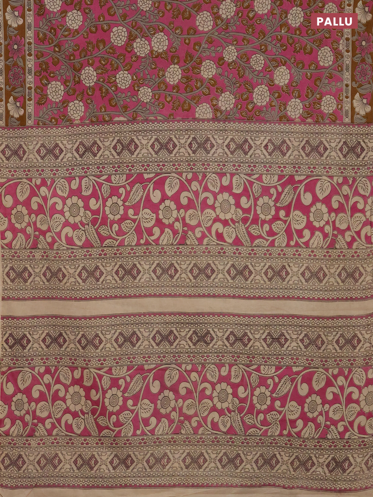 Kalamkari cotton saree pink and dark mustard with allover prints and printed border