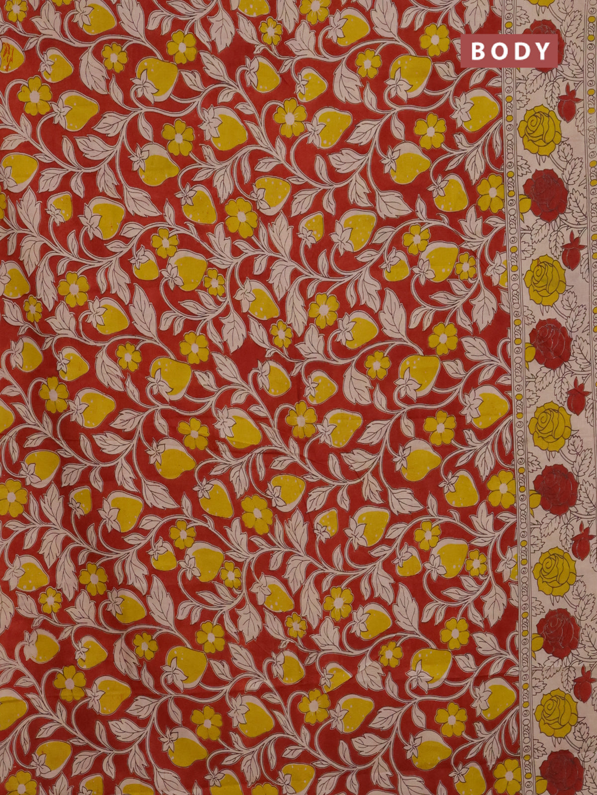 Kalamkari cotton saree red and beige with allover prints and printed border