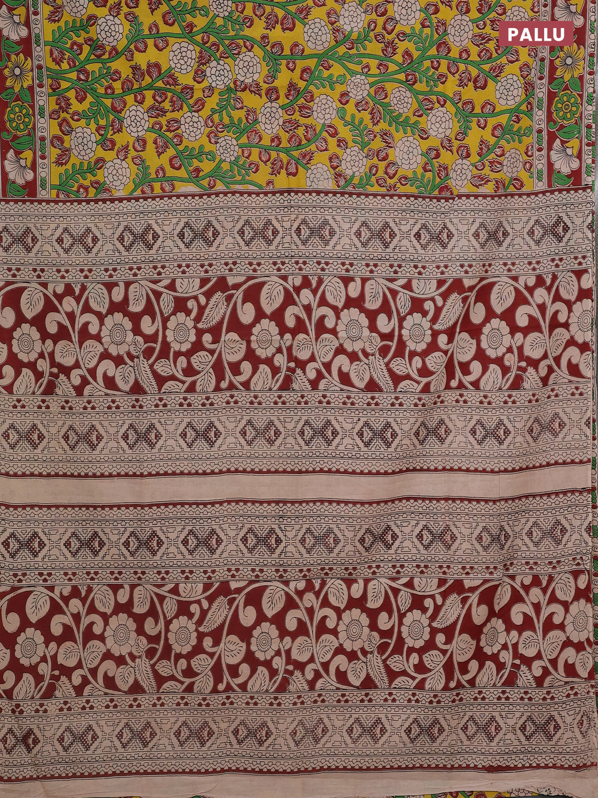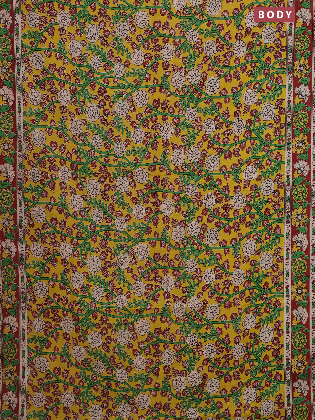 Kalamkari cotton saree yellow and maroon with allover prints and printed border
