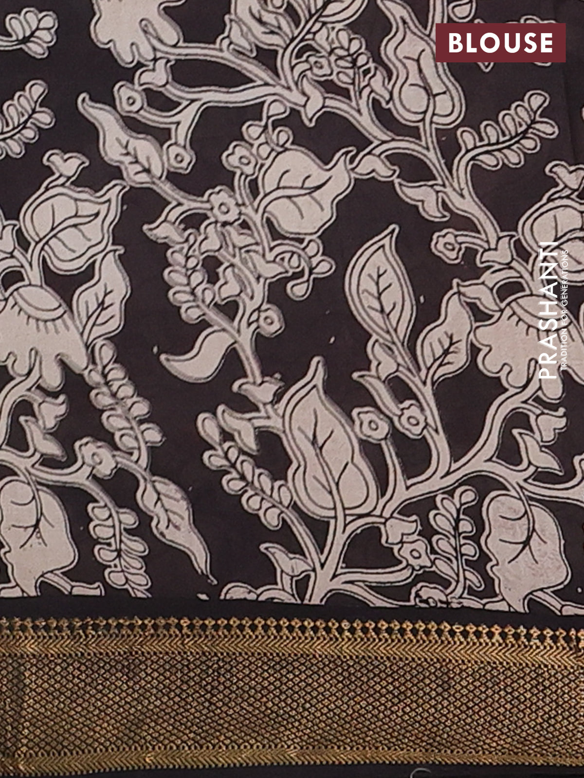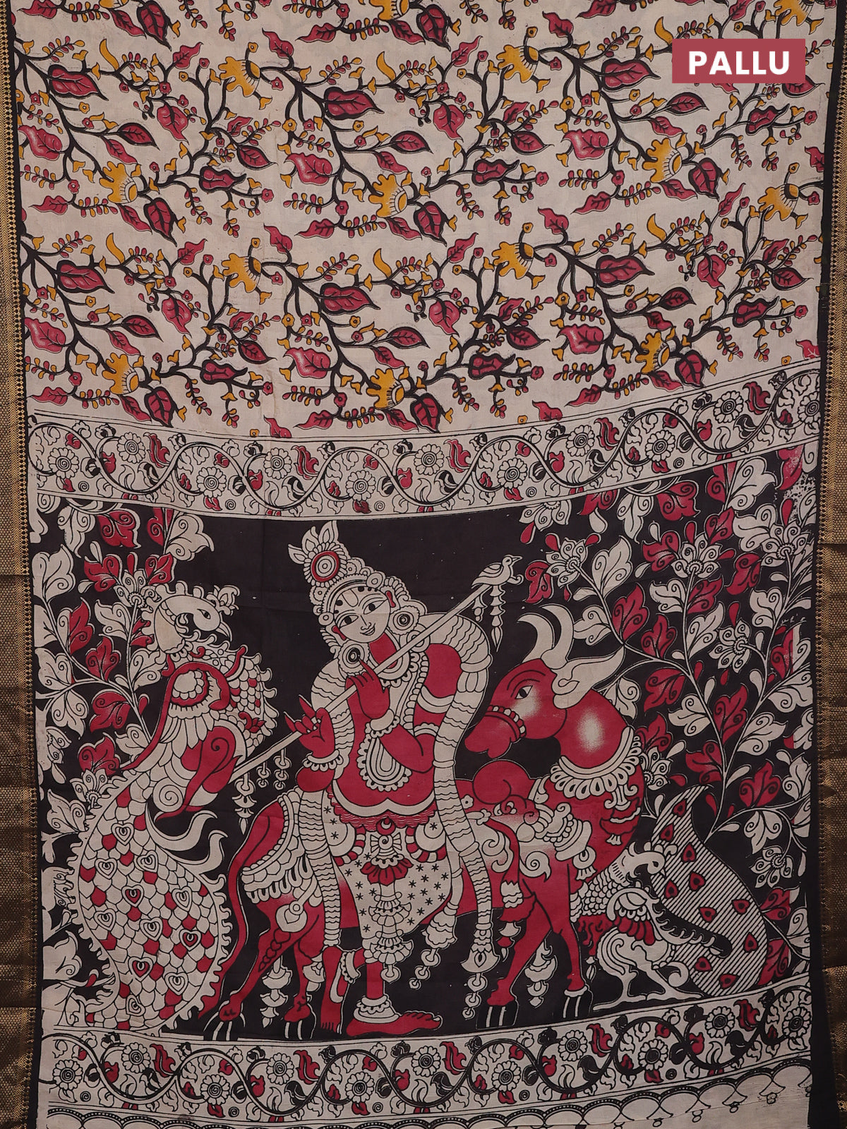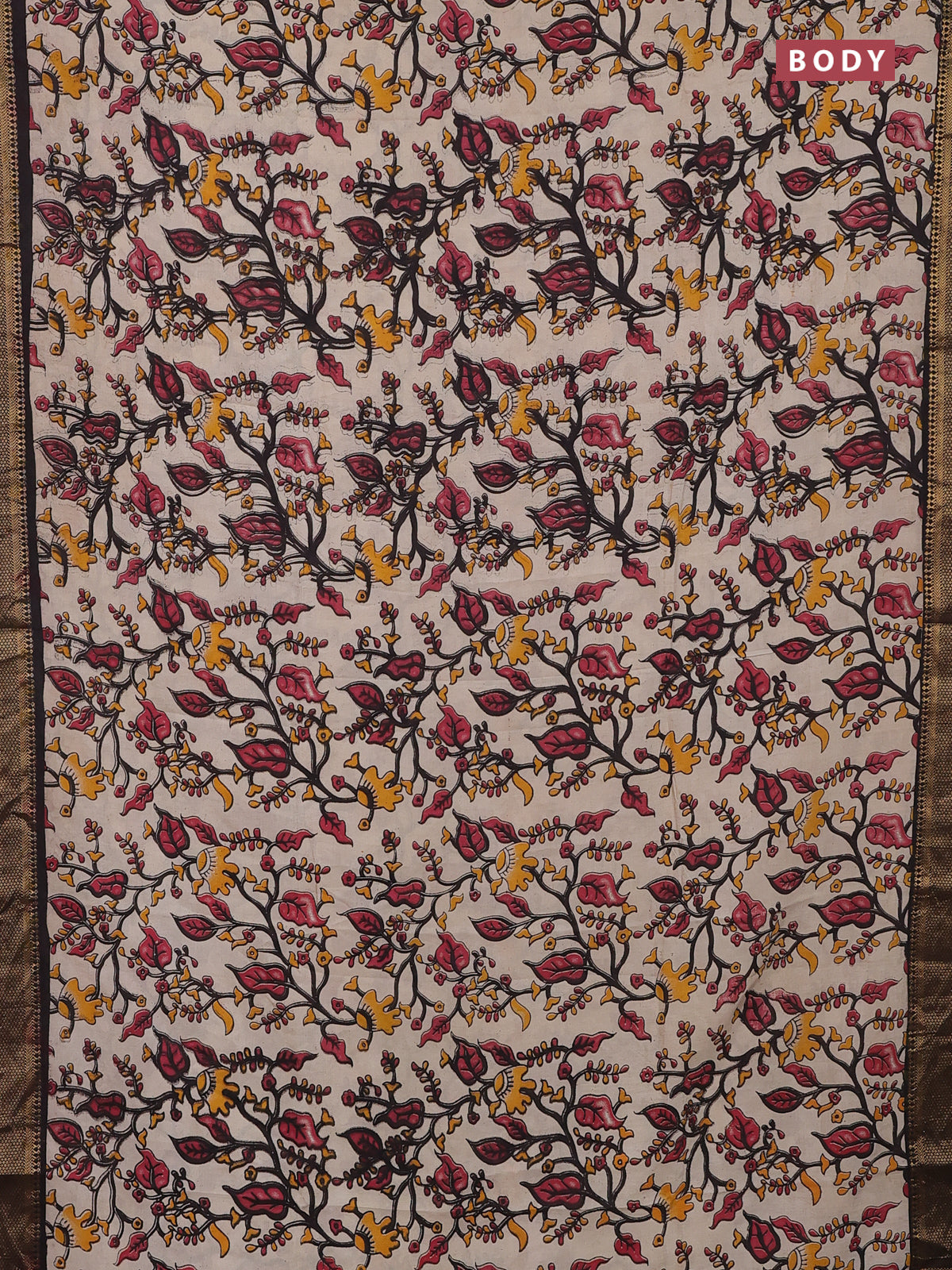Kalamkari semi silk saree beige and black with allover kalamkari prints and zari woven border