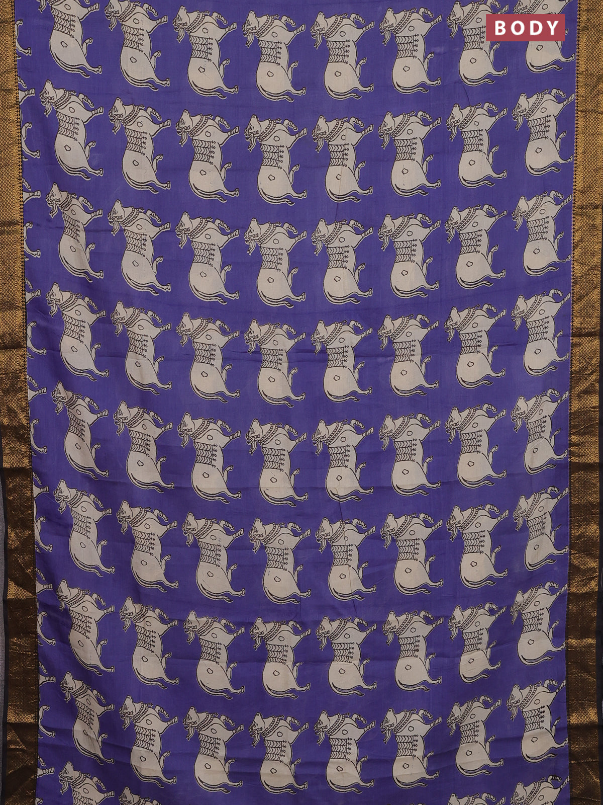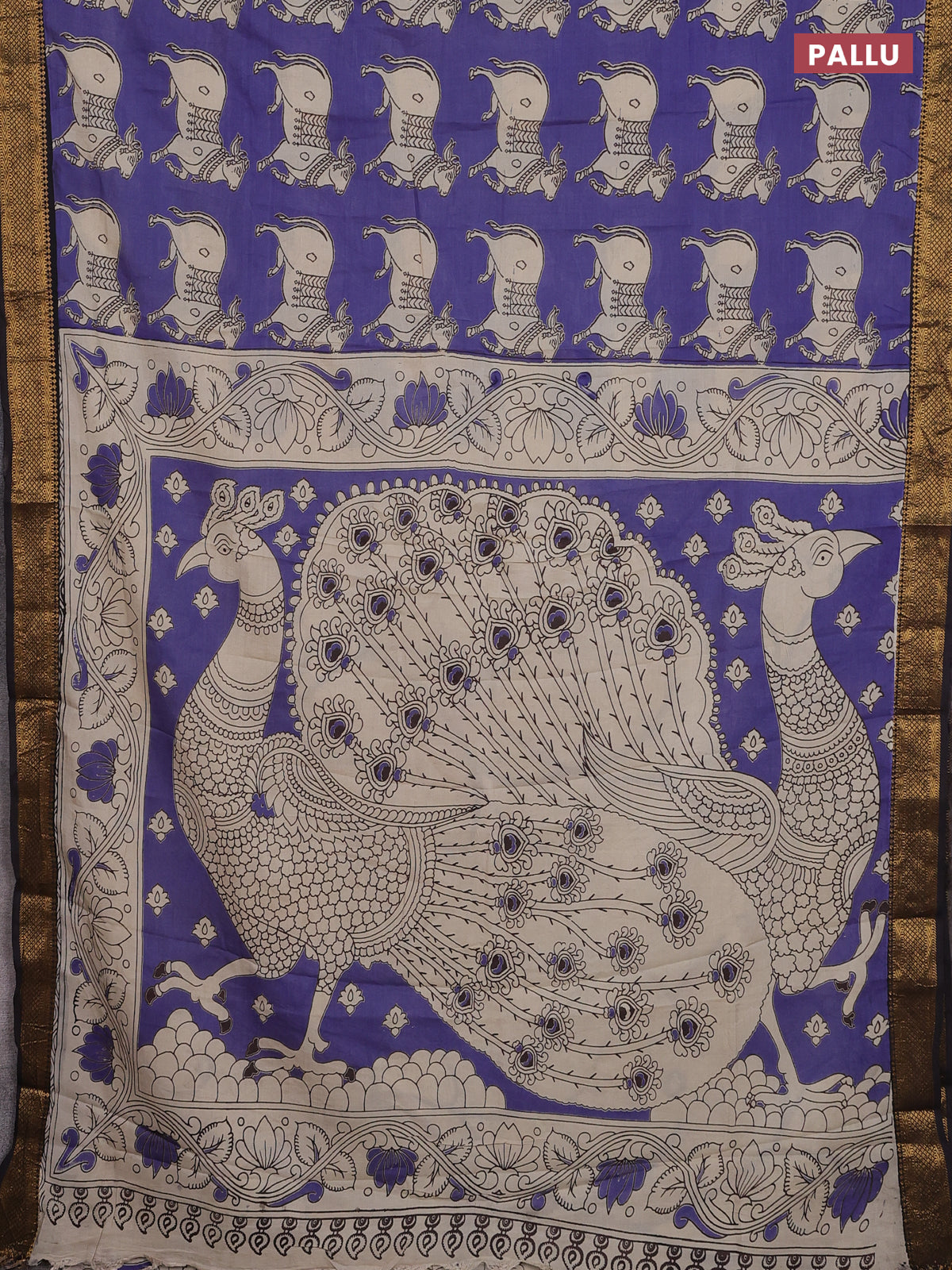 Kalamkari semi silk saree blue and black with butta prints and zari woven border