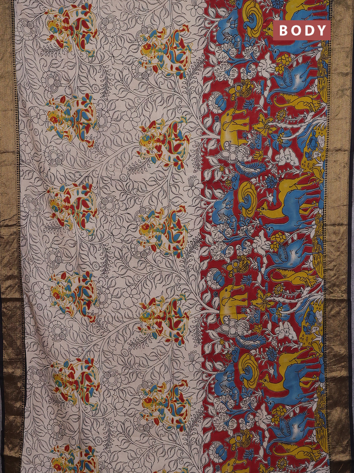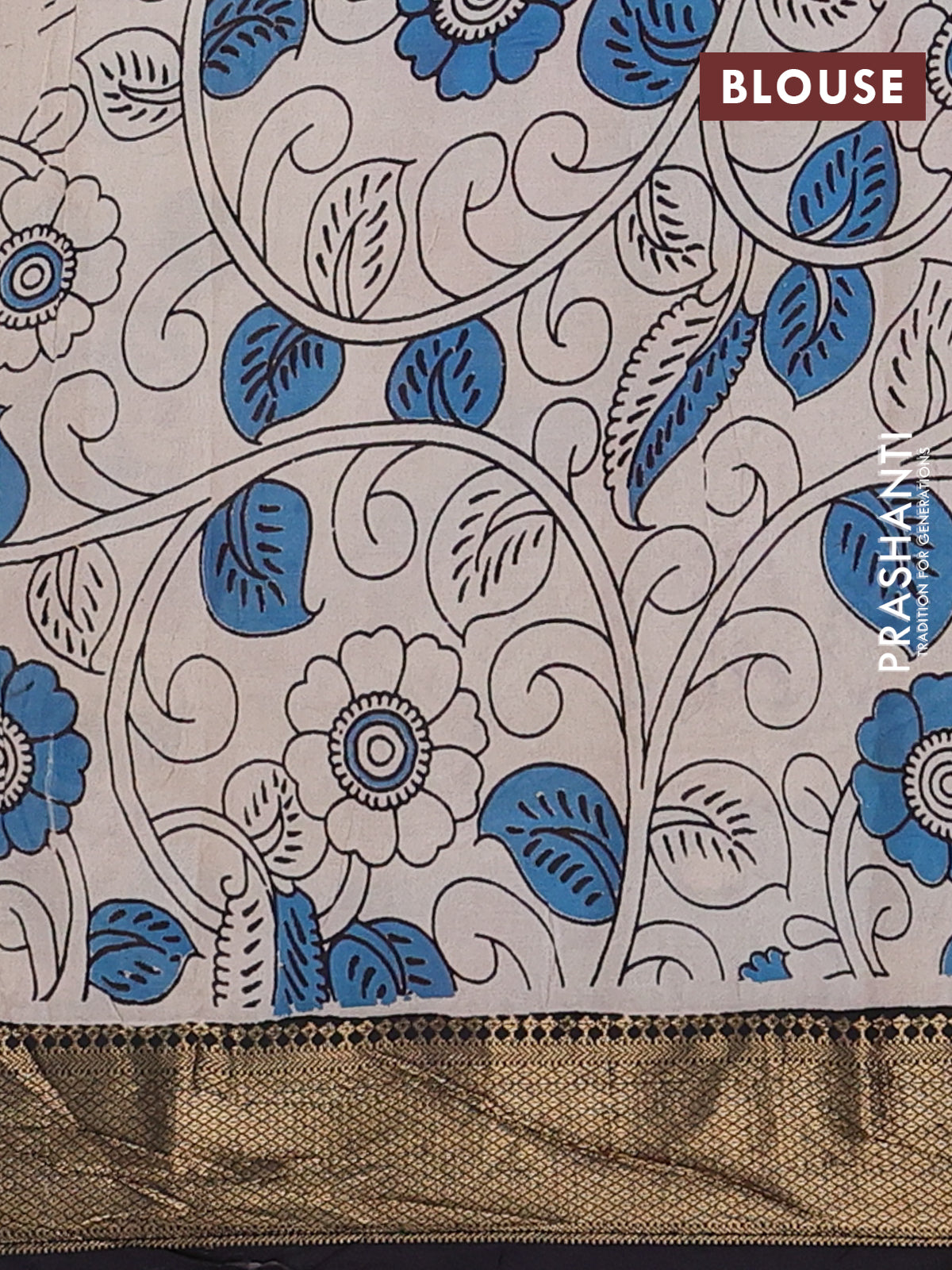 Kalamkari semi silk saree maroon and black with allover prints and zari woven border