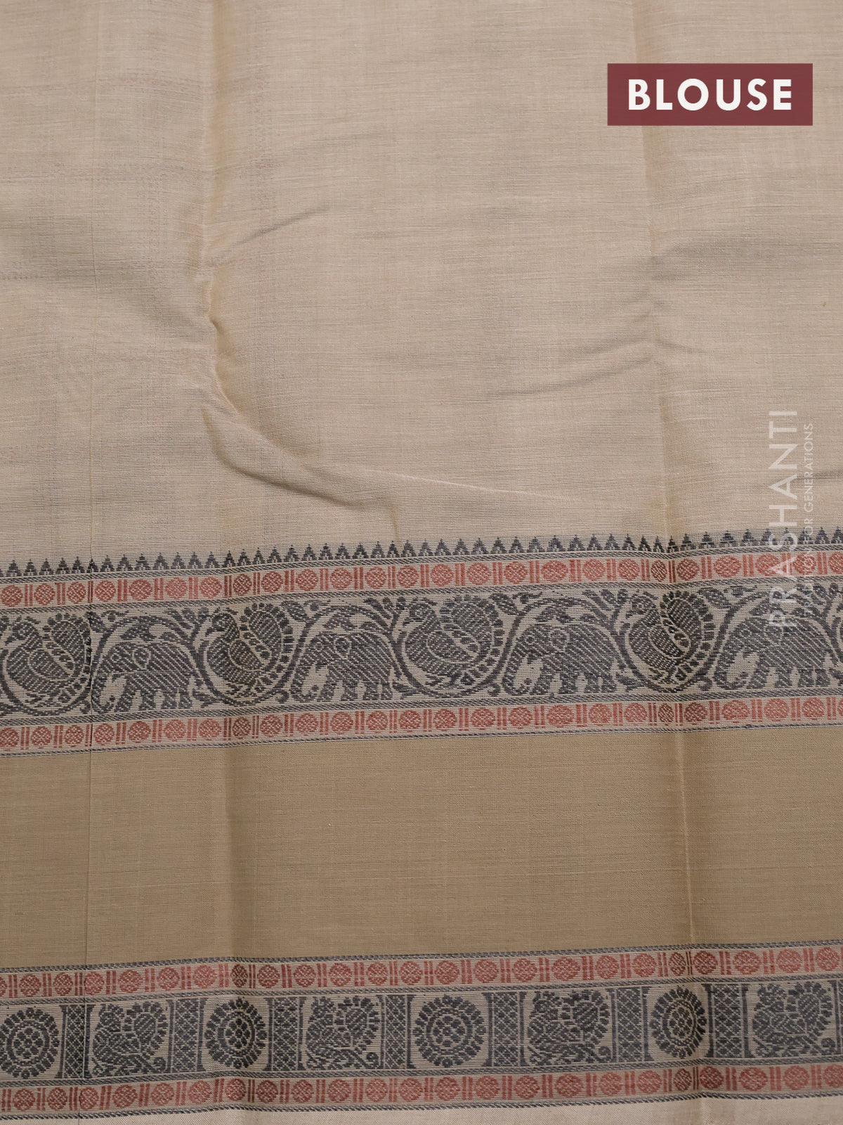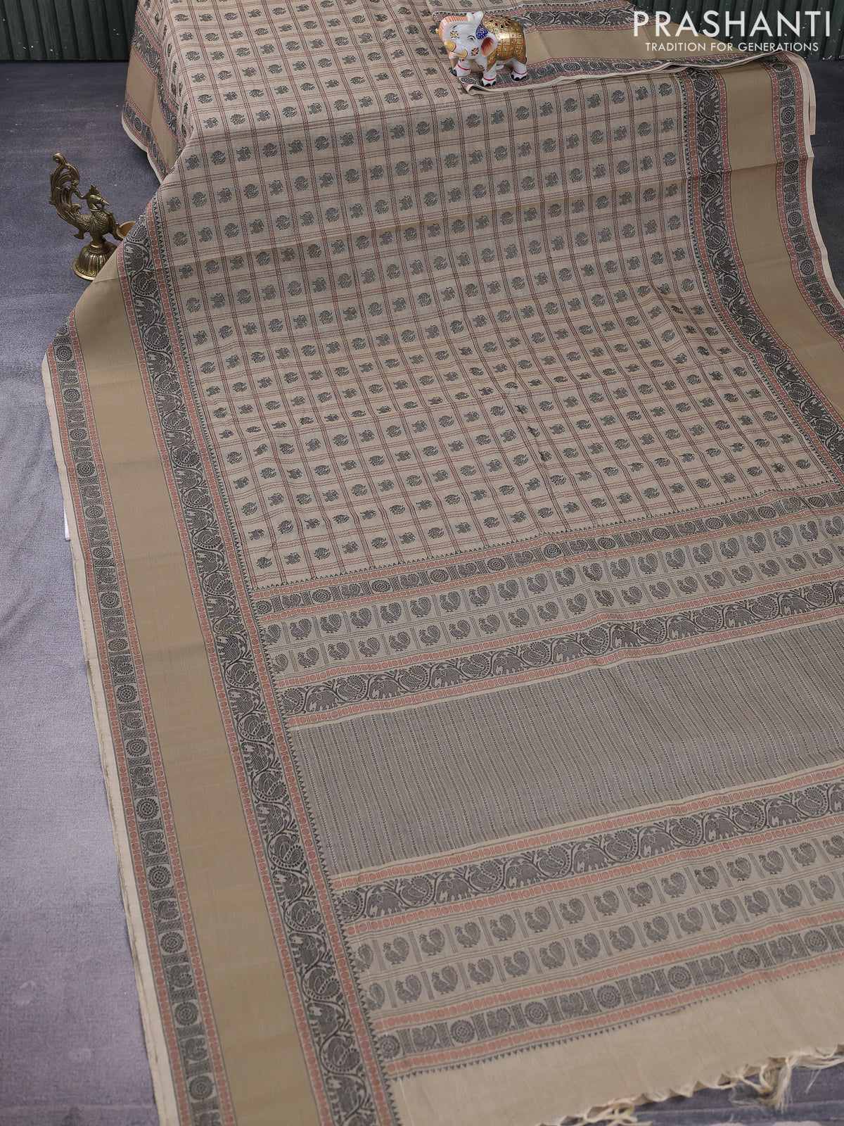 Kanchi cotton saree beige with allover thread checks & buttas and rettapet thread woven border