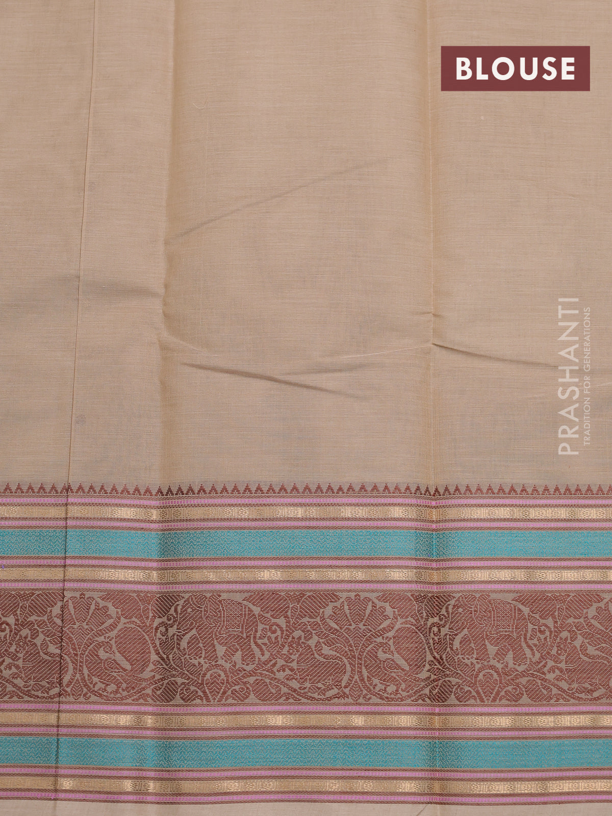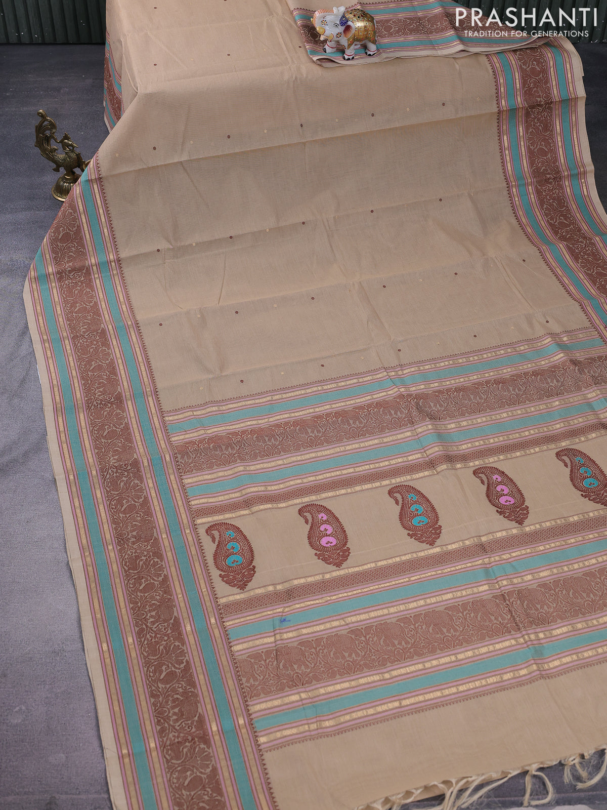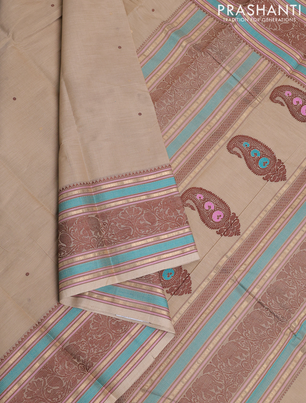 Kanchi cotton saree beige with thread woven buttas and thread woven border