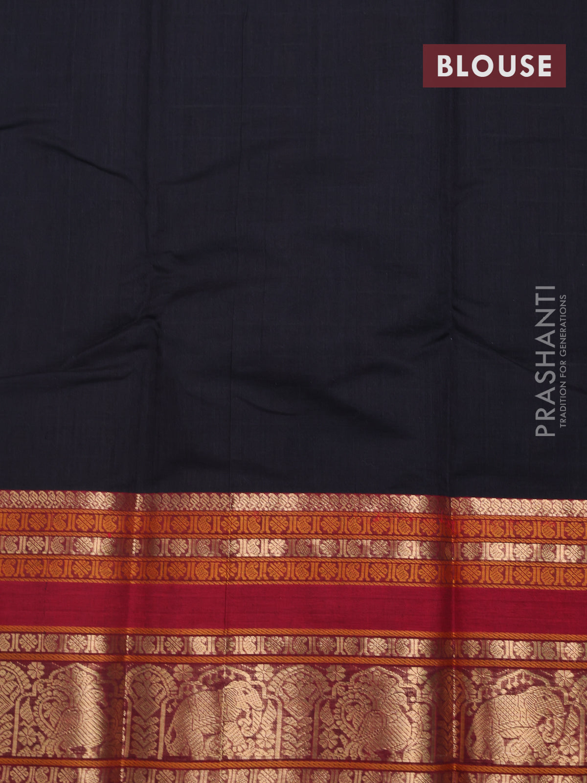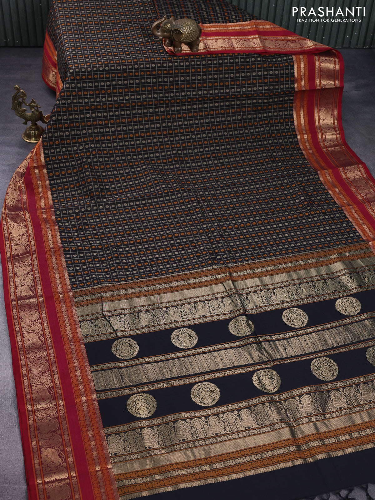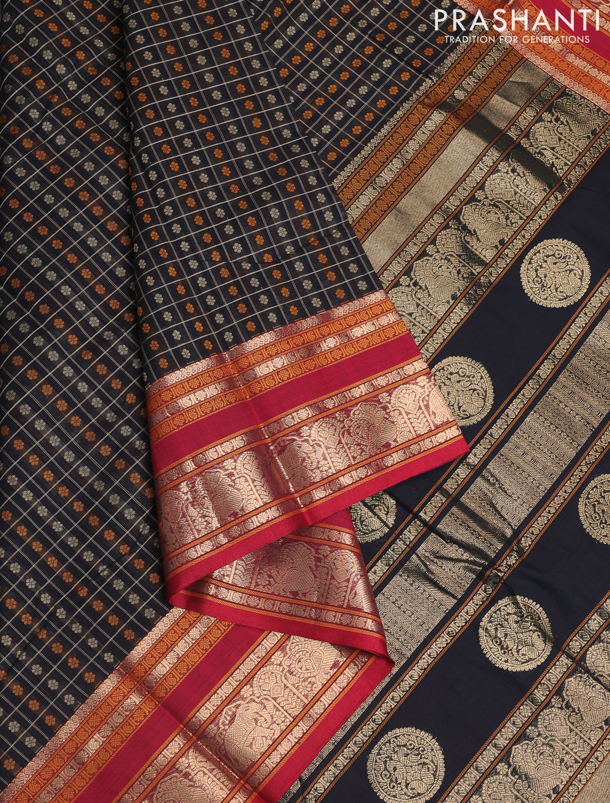 Kanchi cotton saree black and maroon with allover thread checks & 1000 buttas and zari woven border