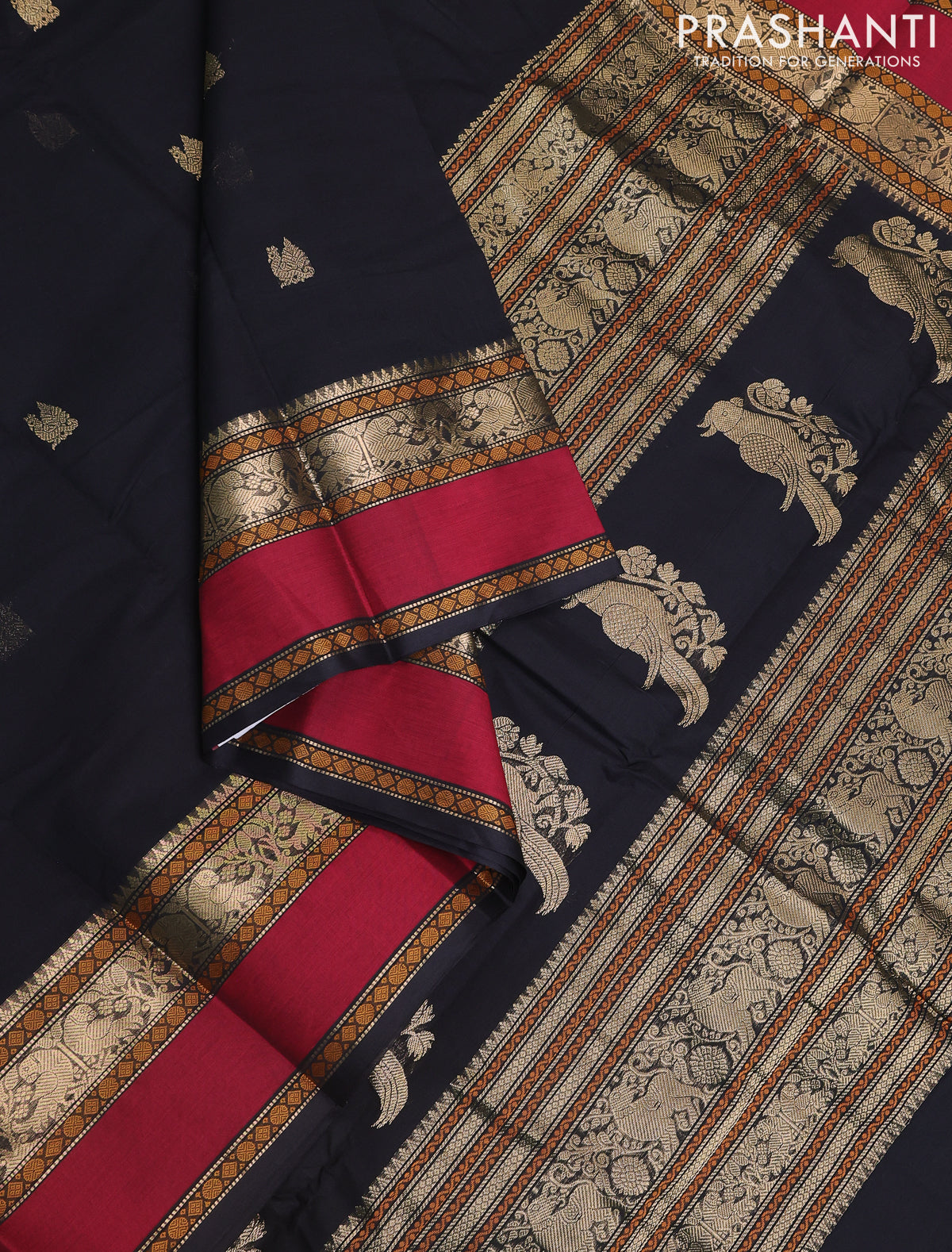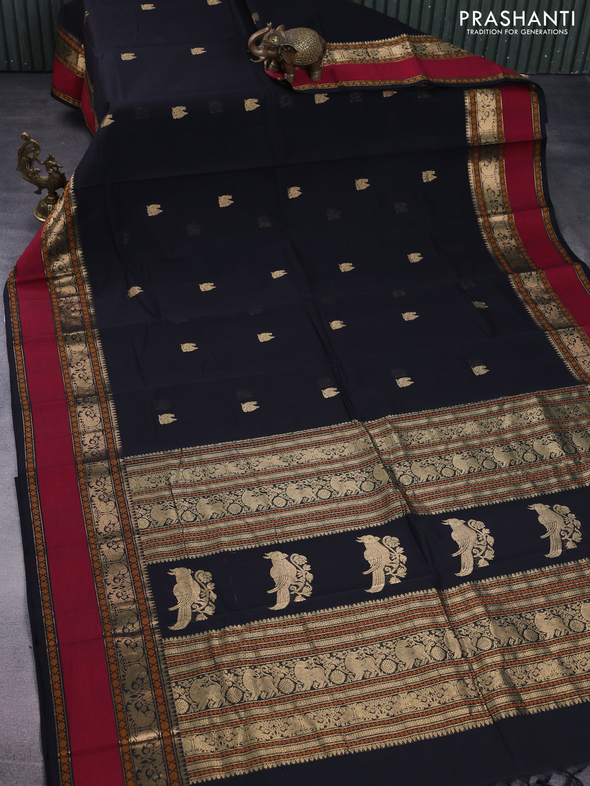 Kanchi cotton saree black and maroon with zari woven buttas and rettapet zari woven border