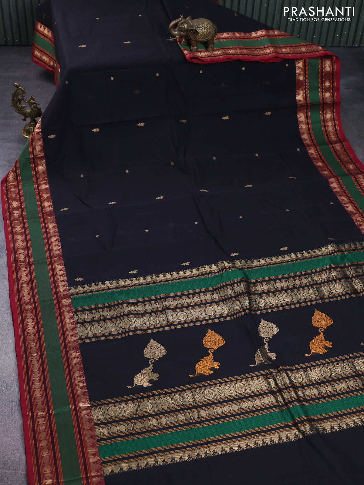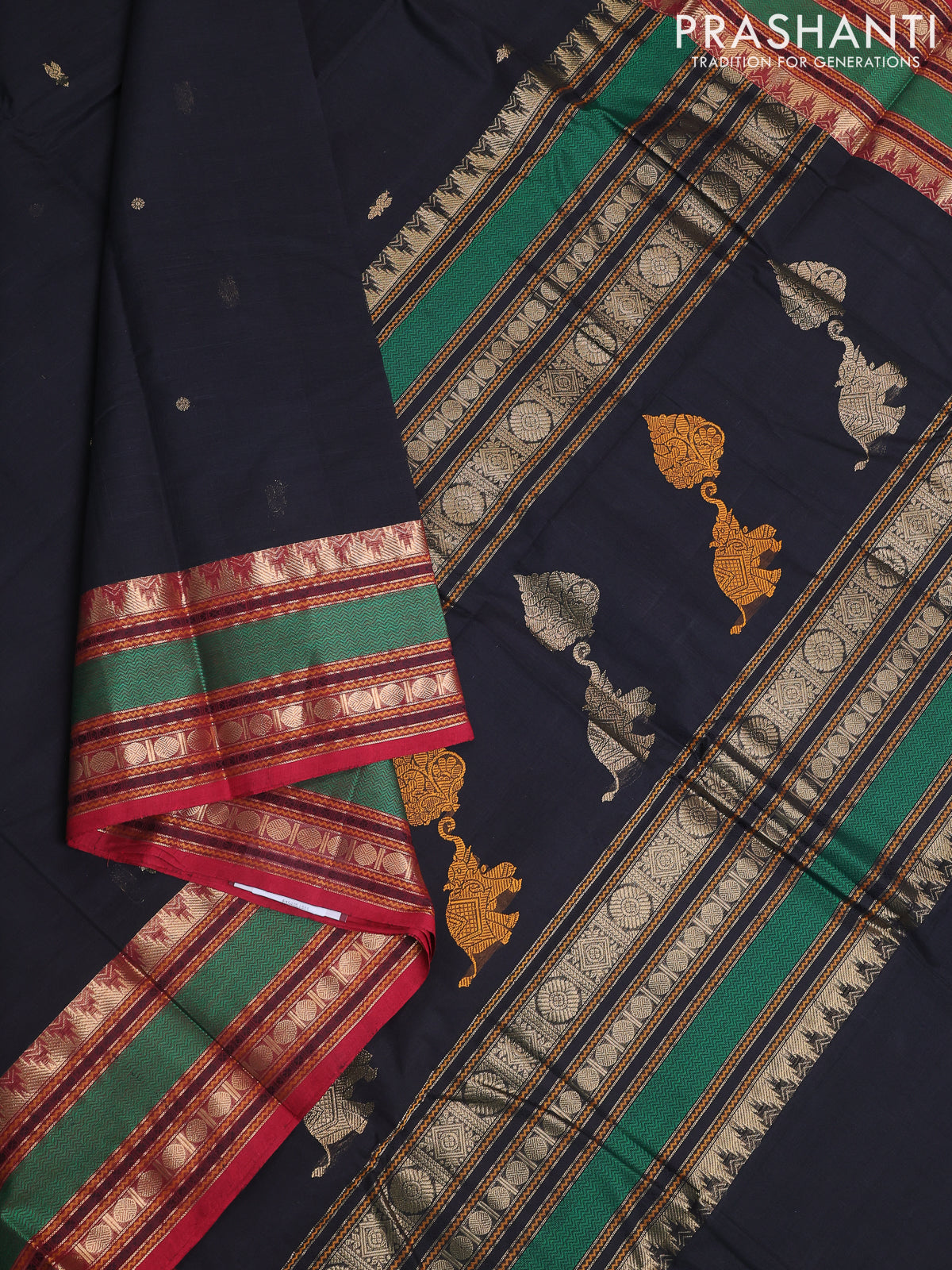 Kanchi cotton saree black and maroon with zari woven buttas and zari woven border