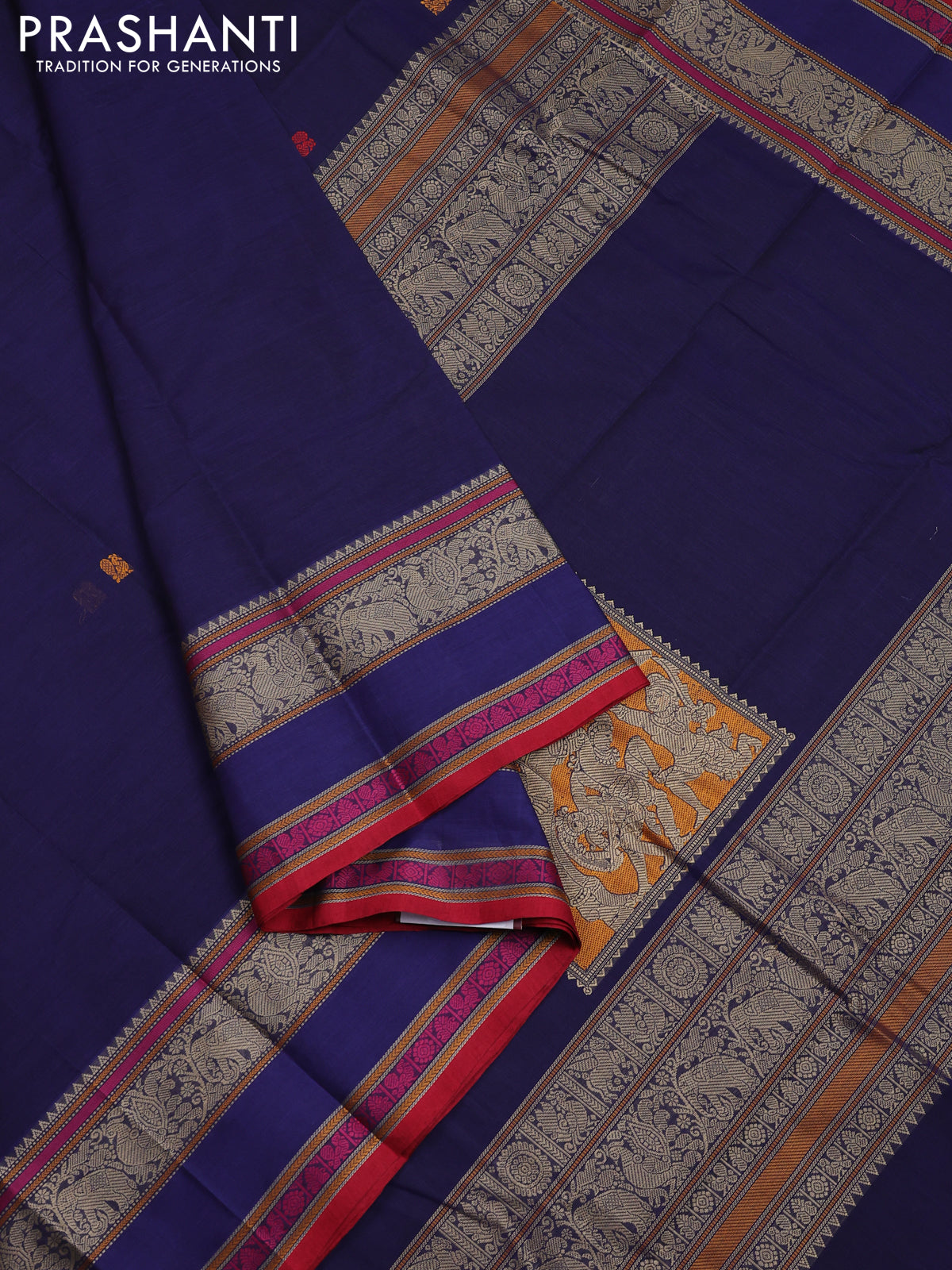 Kanchi cotton saree blue and red with thread woven buttas and rettapet thread woven border