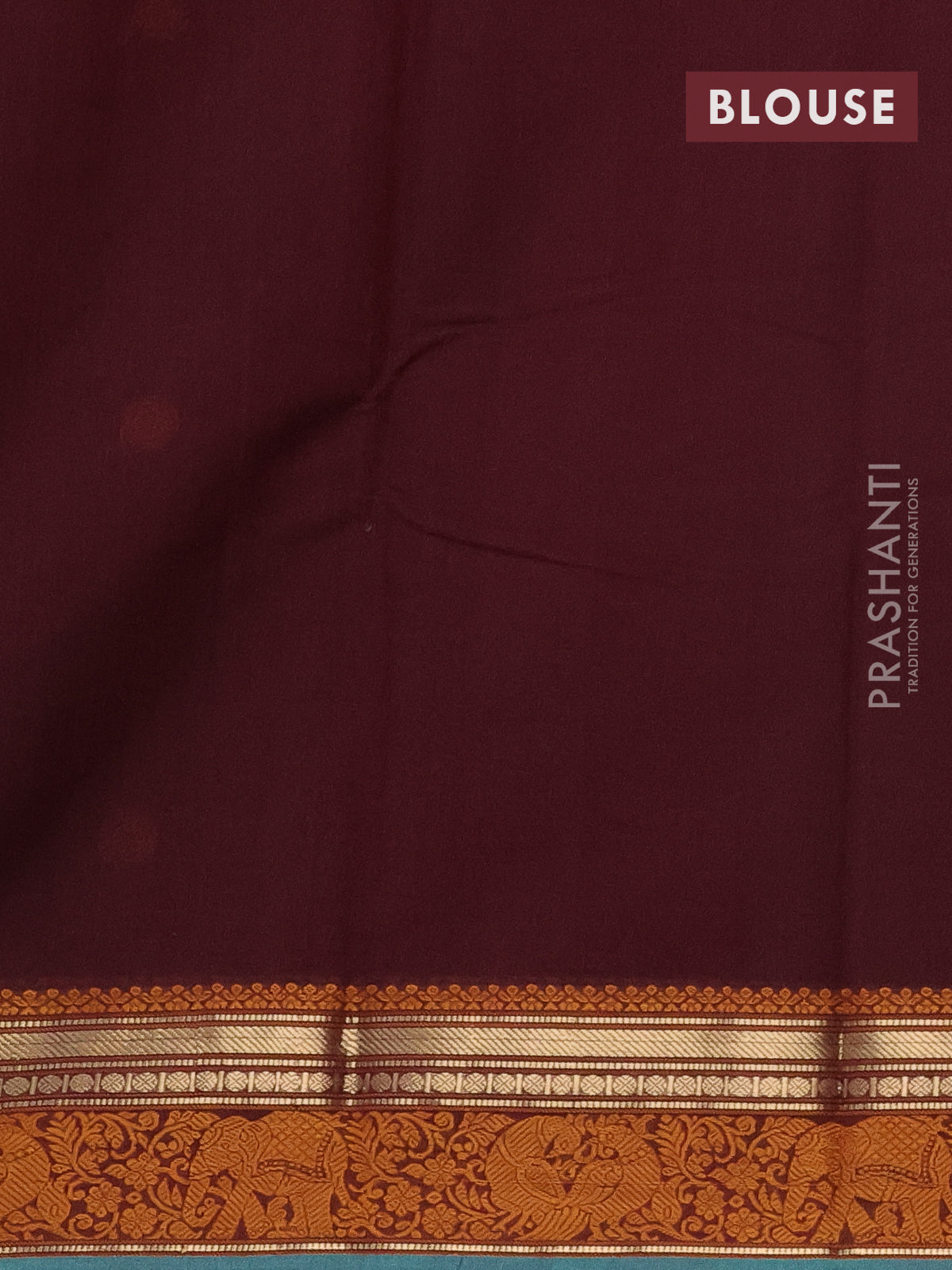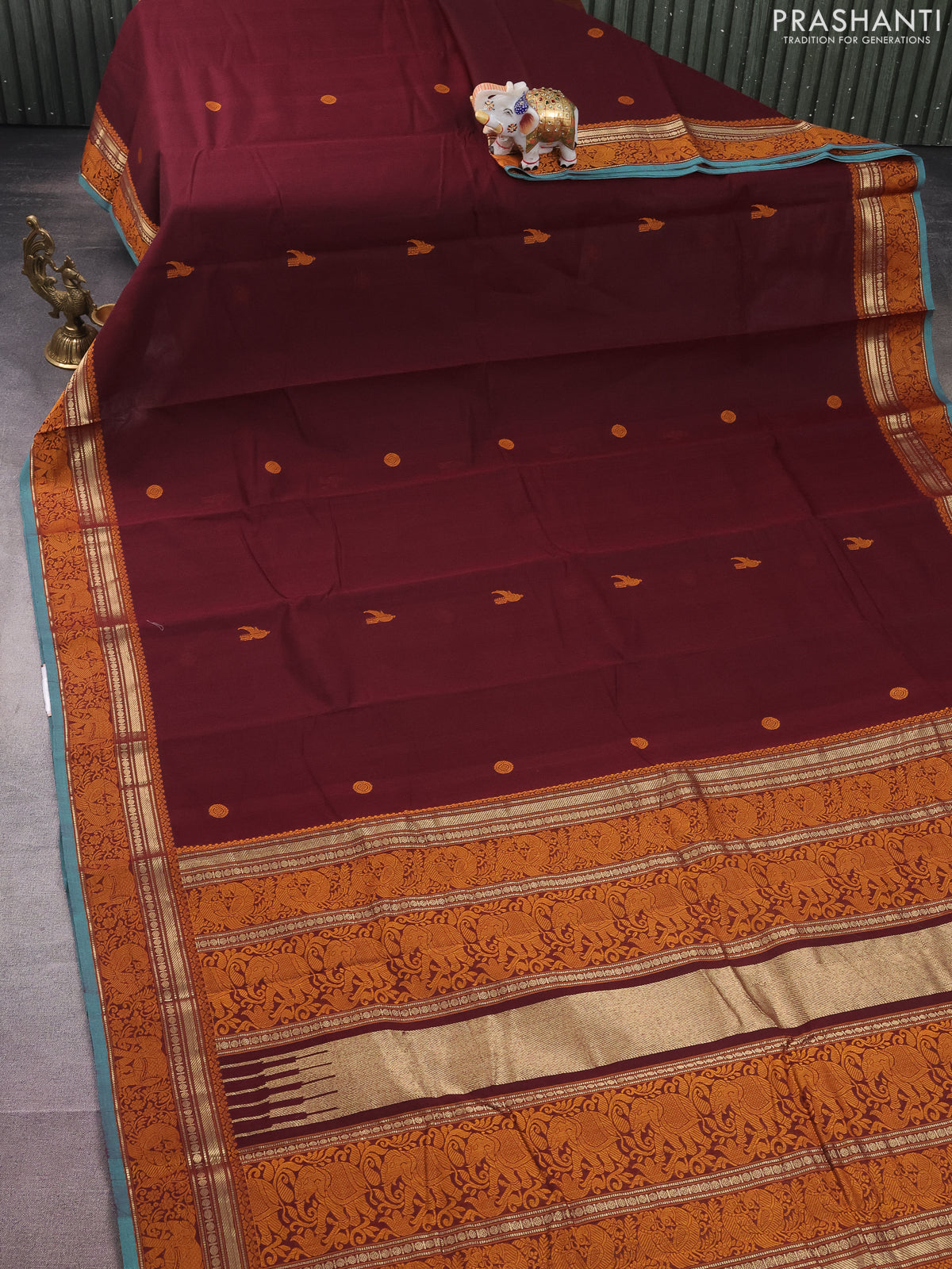 Kanchi cotton saree deep maroon and teal green shade with thread woven buttas and thread & zari woven border