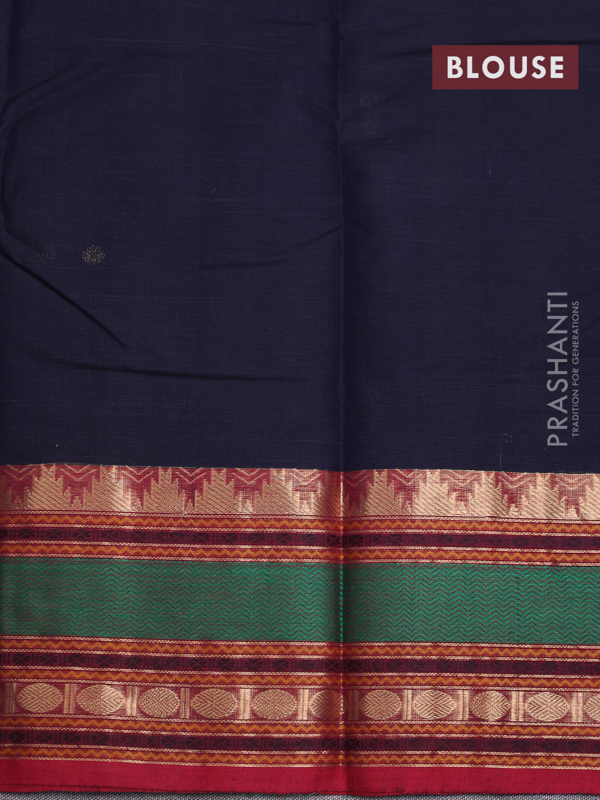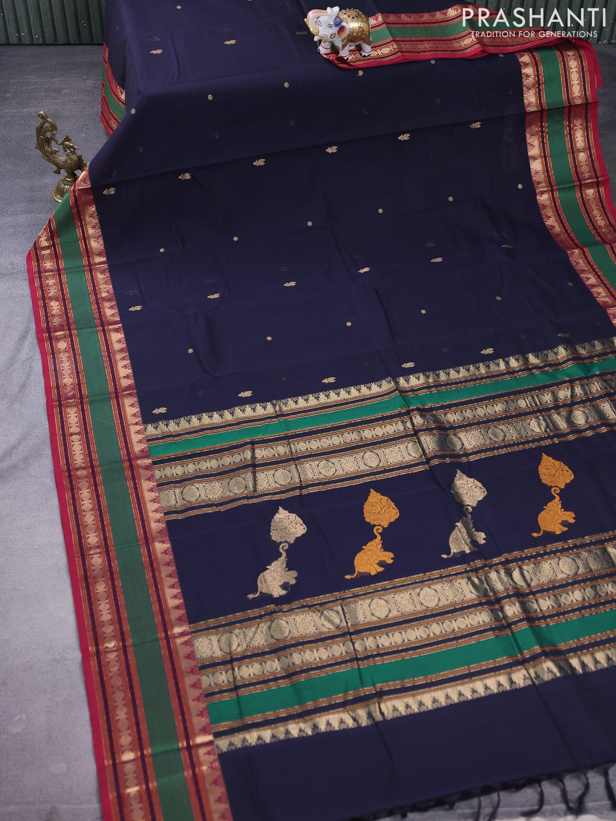 Kanchi cotton saree deep navy blue and maroon with zari woven buttas and zari woven border
