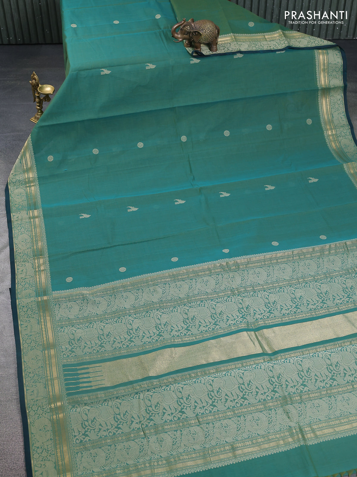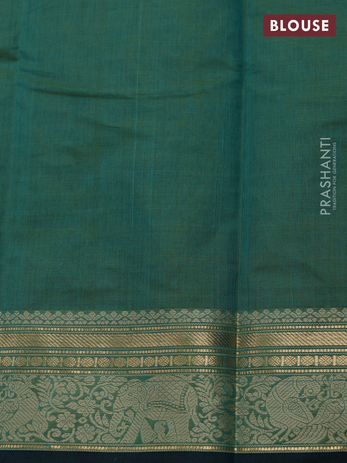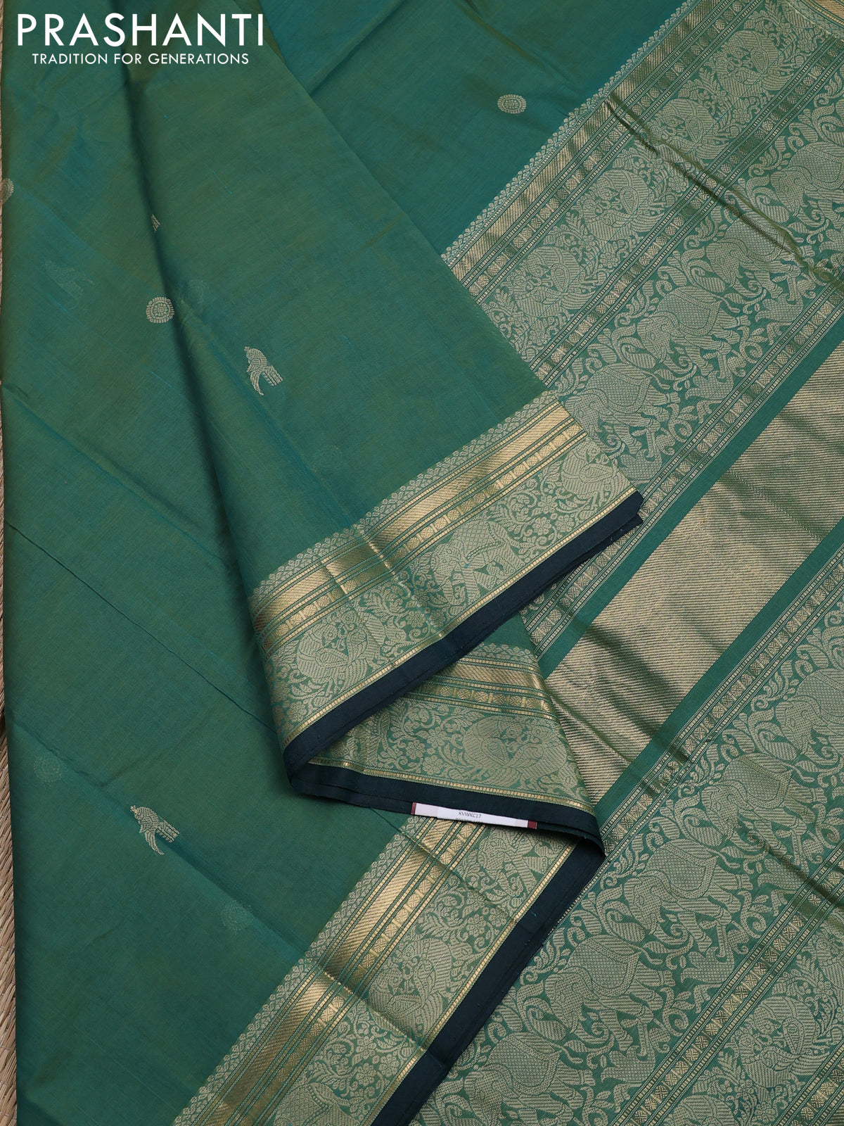 Kanchi cotton saree dual shade of green and peacock green with thread woven buttas and thread & zari woven border