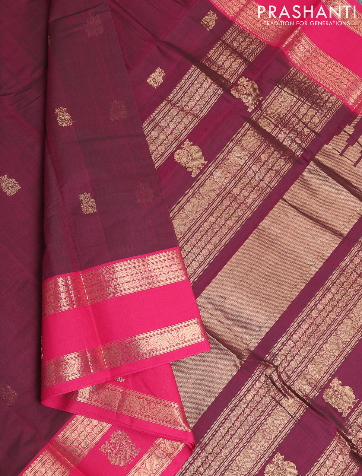 Kanchi cotton saree dual shade of magenta pink and pink with zari woven buttas and zari woven butta border