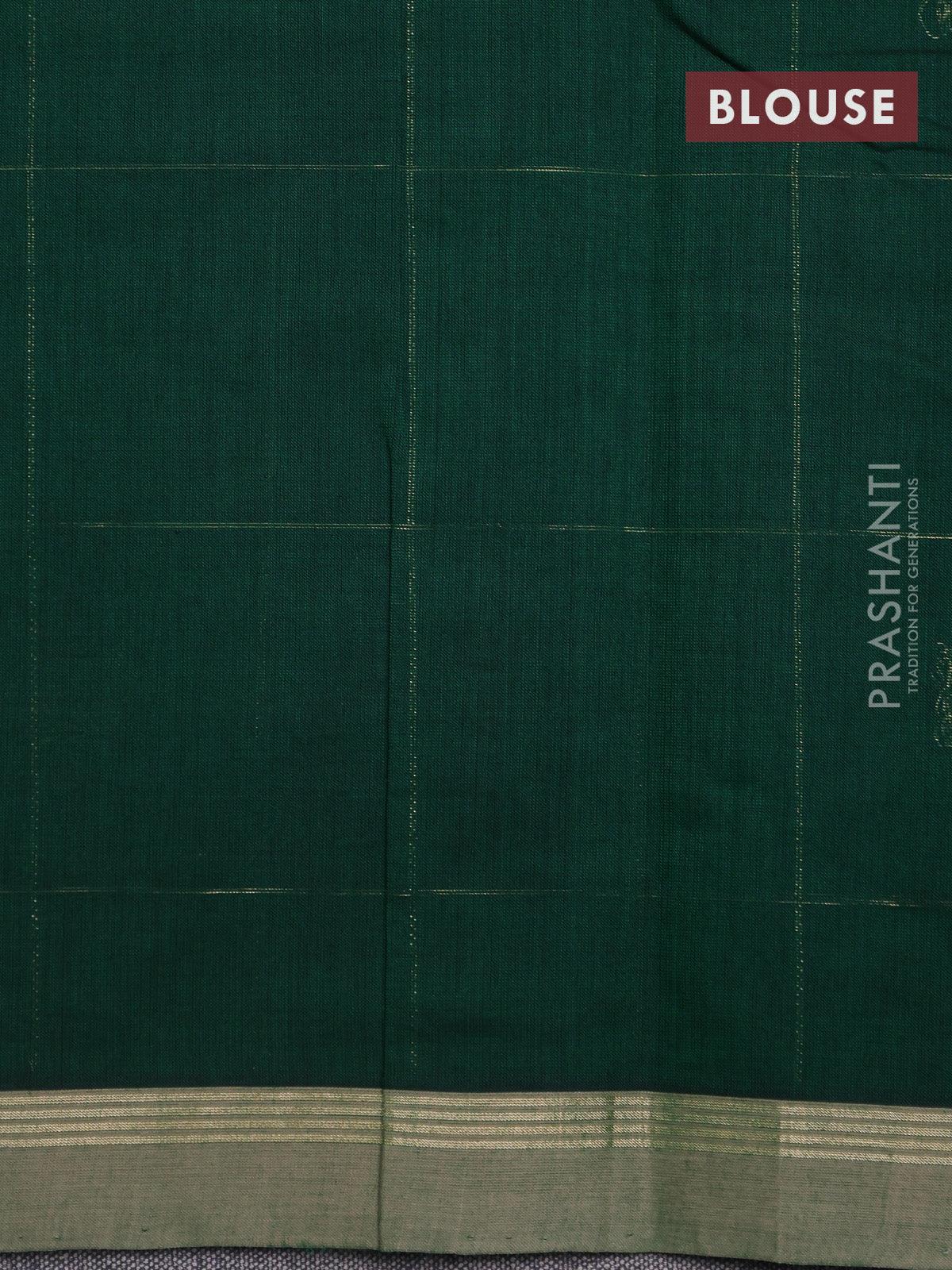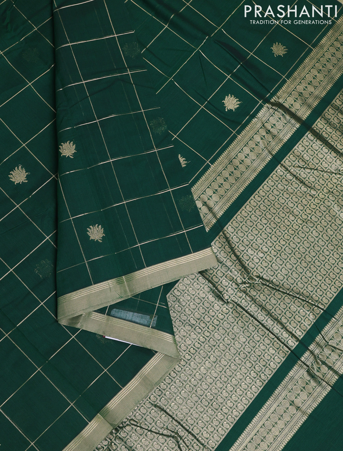 Kanchi cotton saree green with allover zari checks & buttas and zari woven border