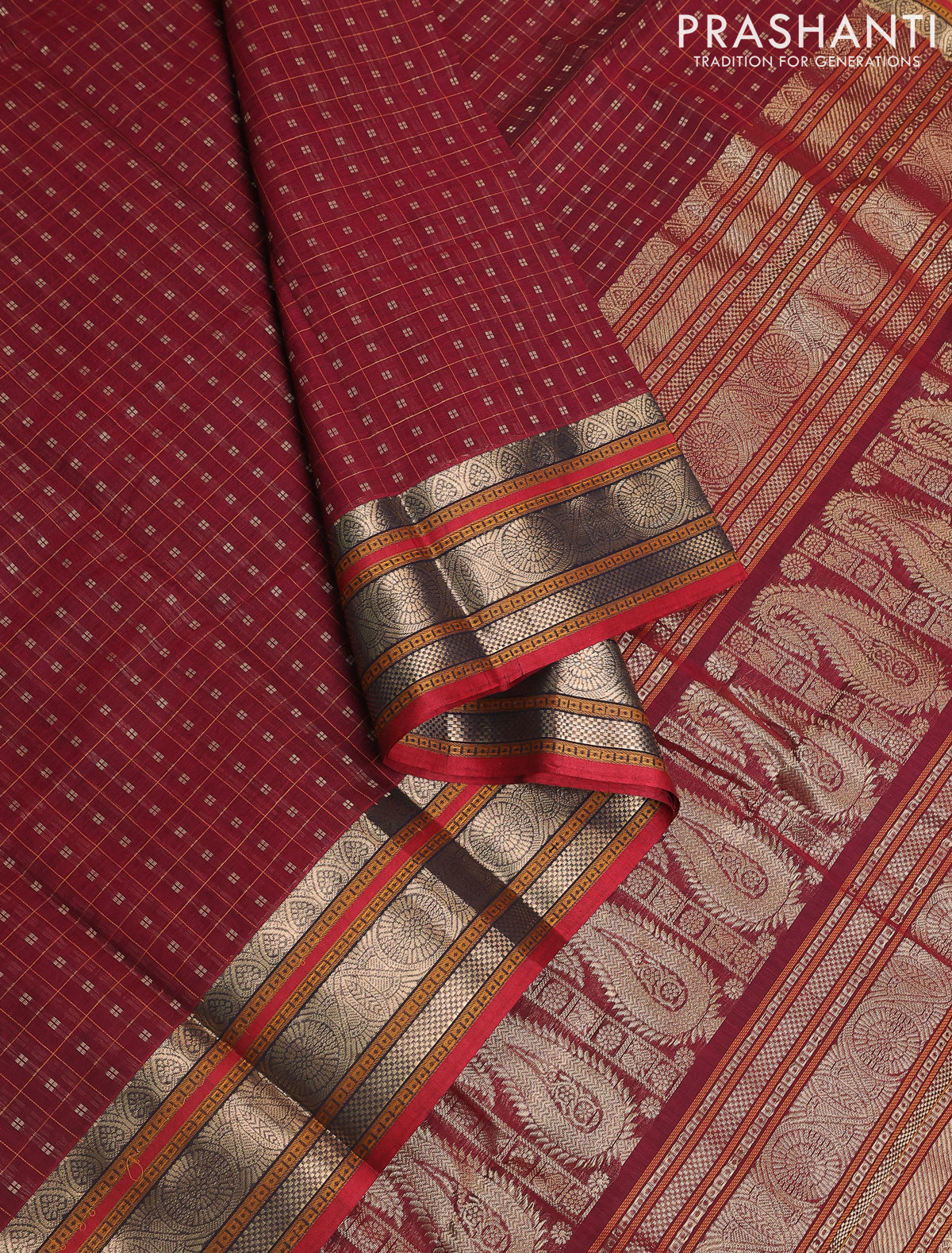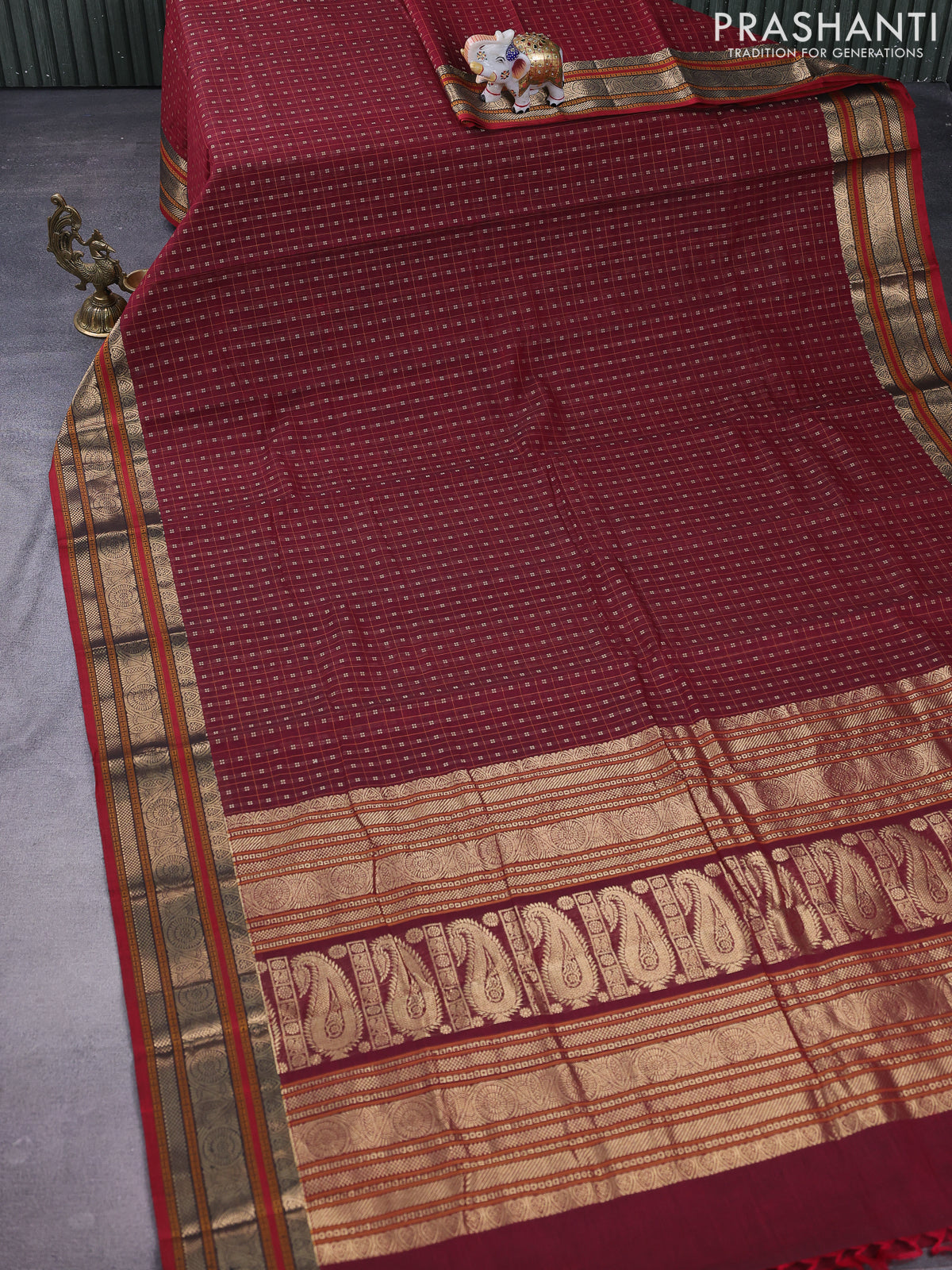 Kanchi cotton saree maroon and red with allover lakshadeepam weaves and zari woven border