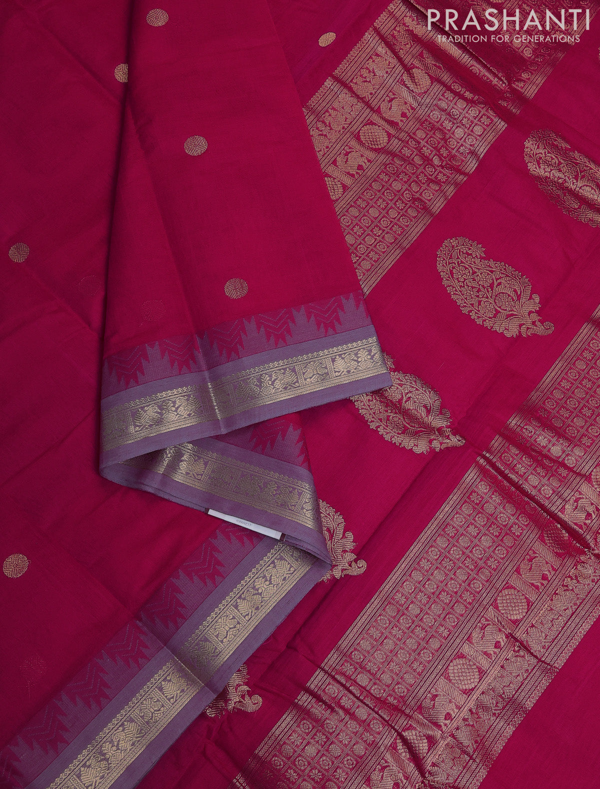 Kanchi cotton saree pink and grey shade with zari woven buttas and temple design