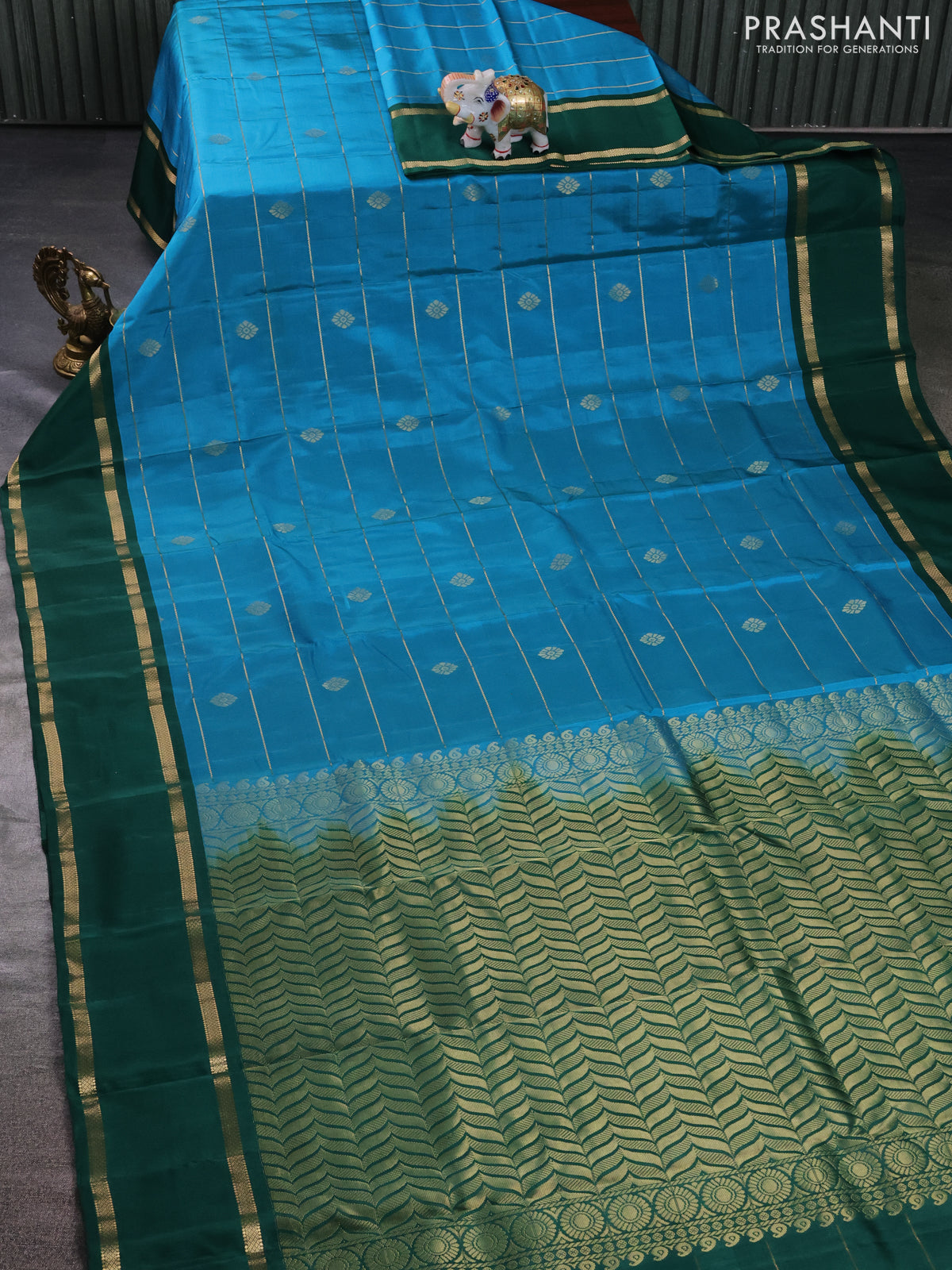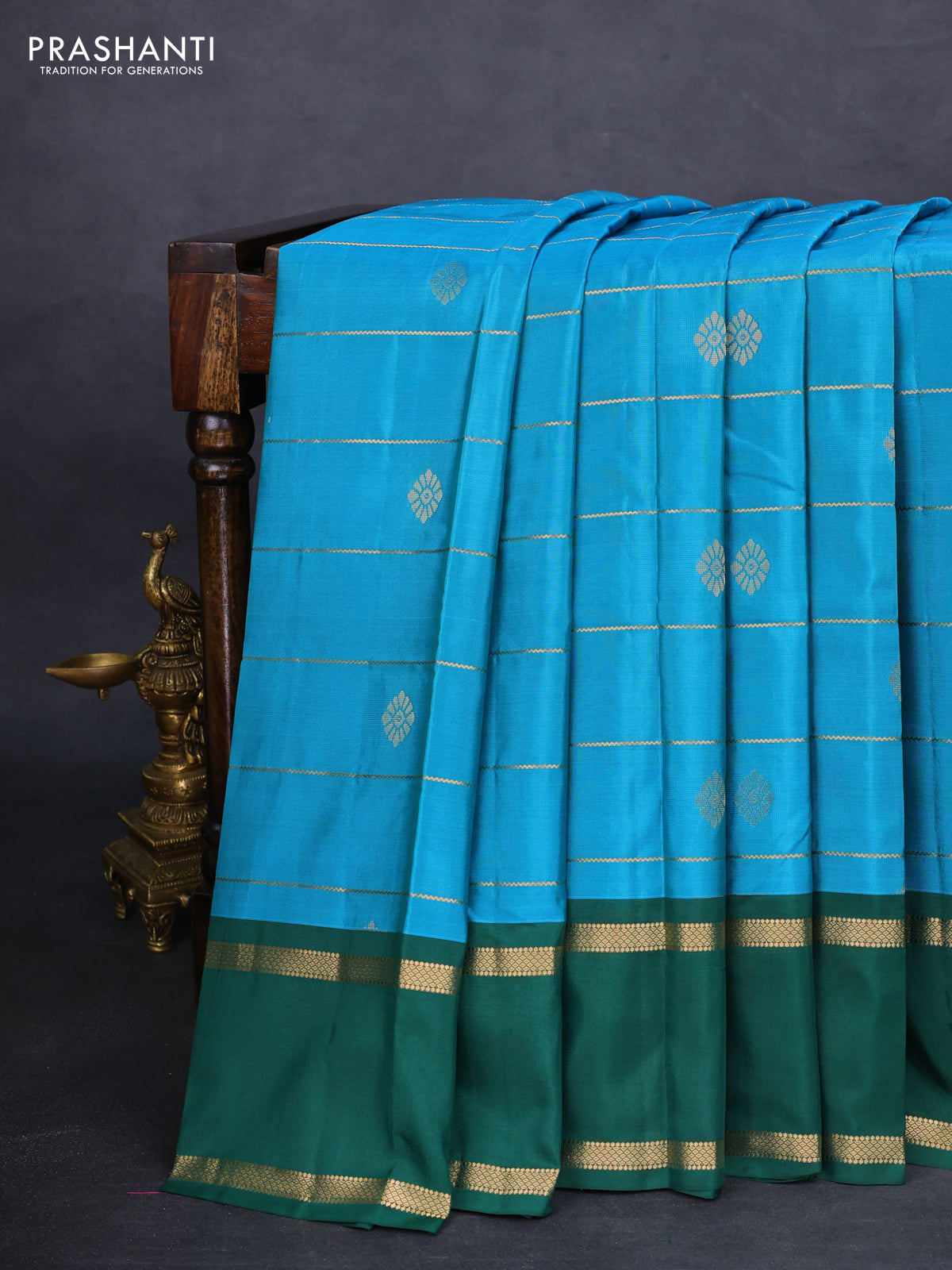 Kanchipuram silk saree cs blue and green with allover zari weaves & buttas and rettapet zari woven border
