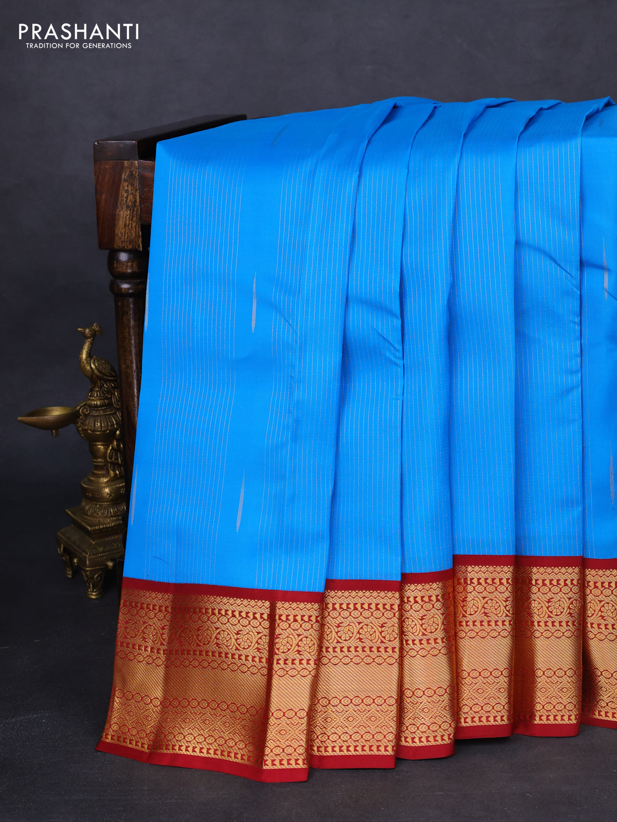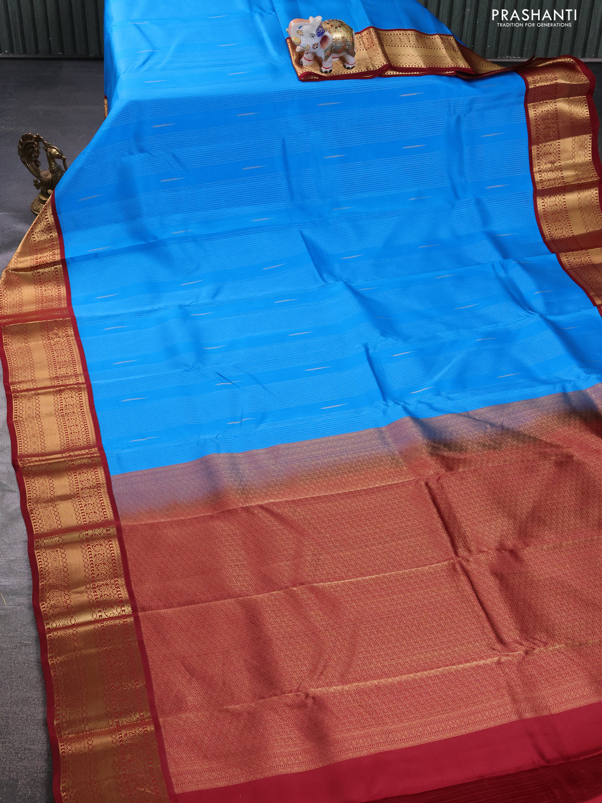 Kanchipuram silk saree cs blue and maroon with allover zari weaves & buttas and zari woven korvai border