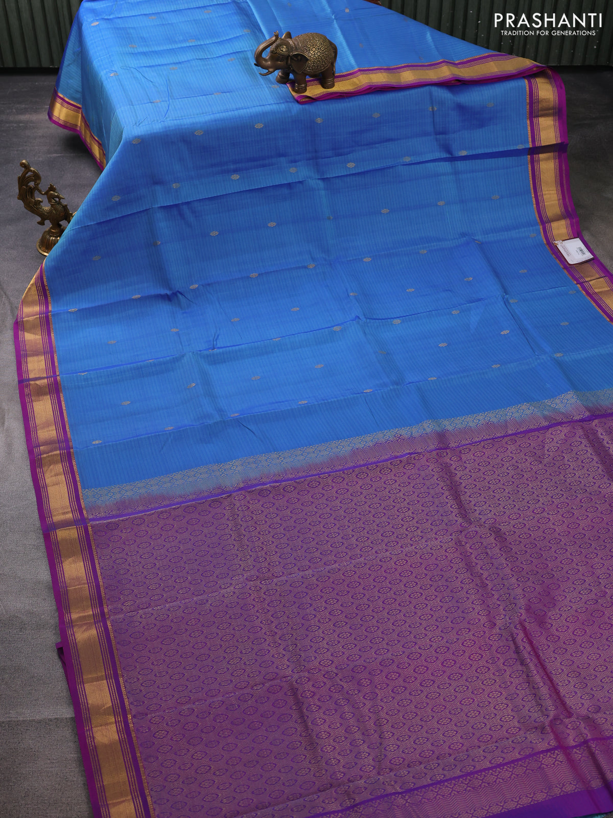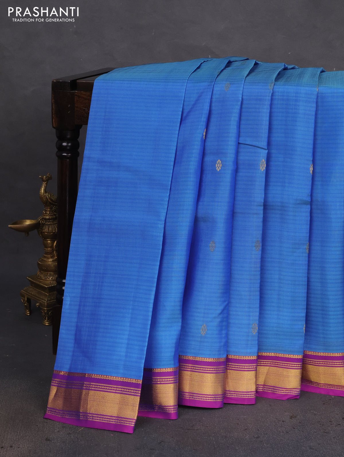 Kanchipuram silk saree cs blue and purple with allover stripes & zari buttas and zari woven border