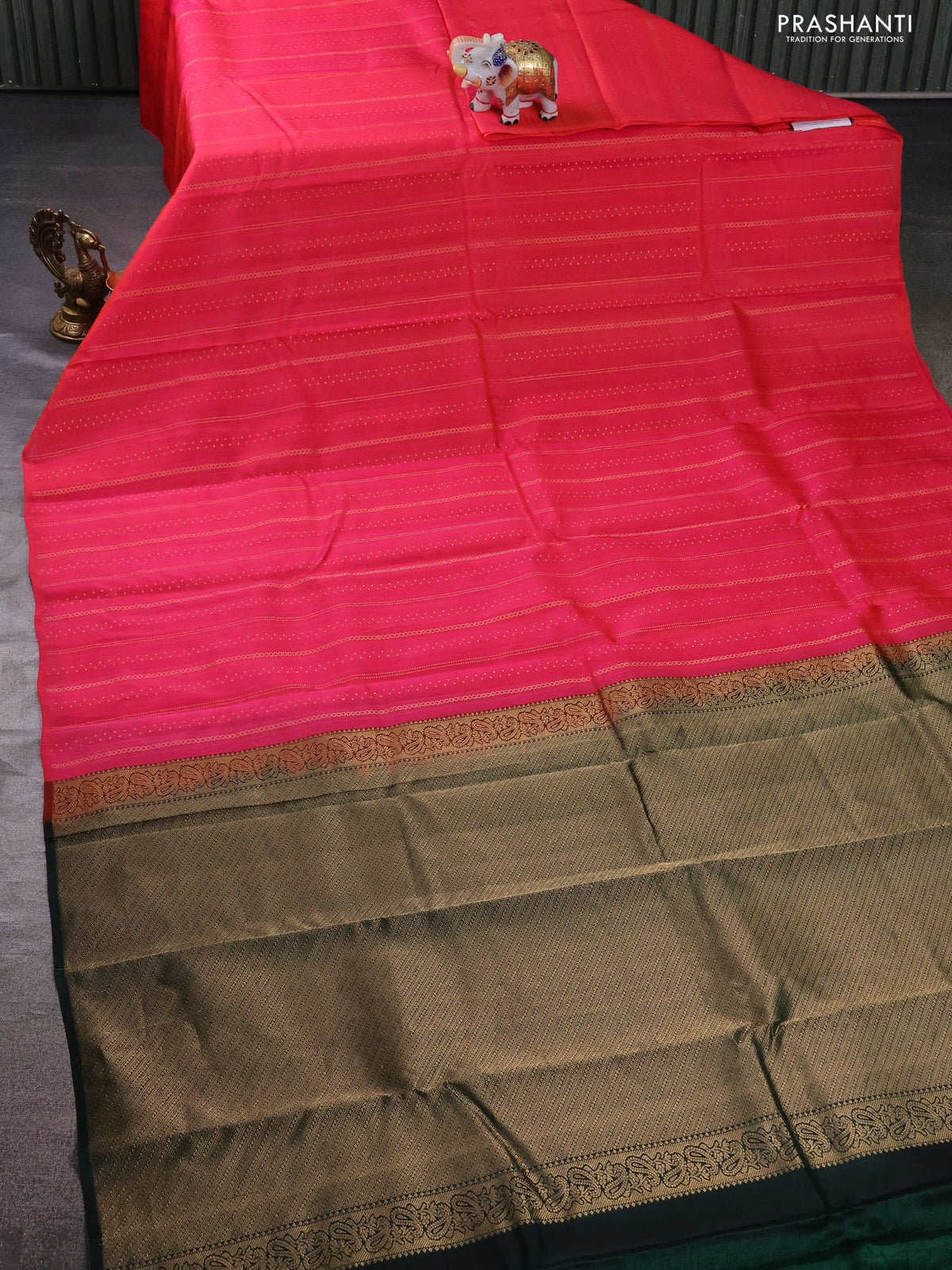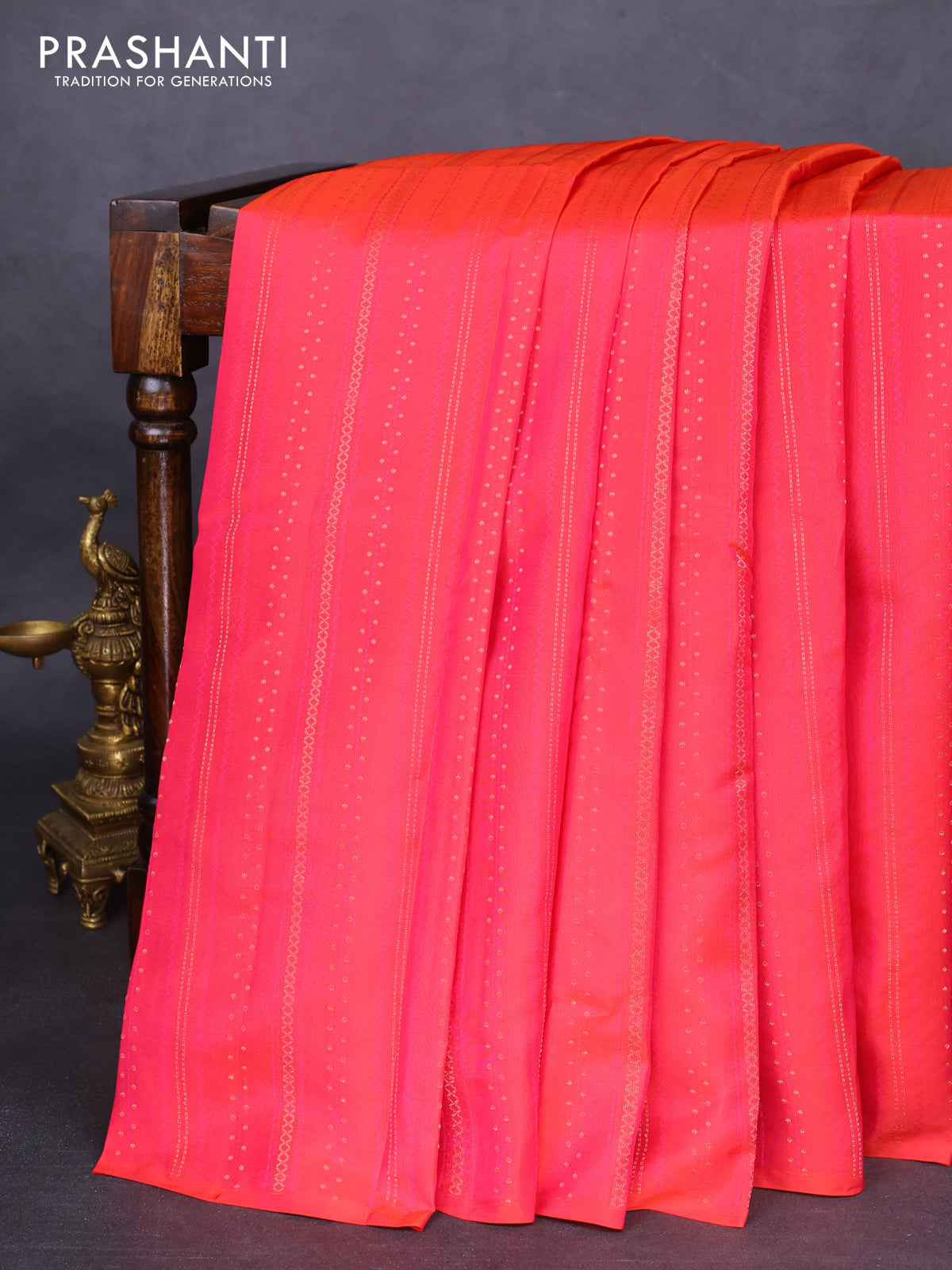Kanchipuram silk saree dual shade of pink and green with allover zari weaves in borderless style