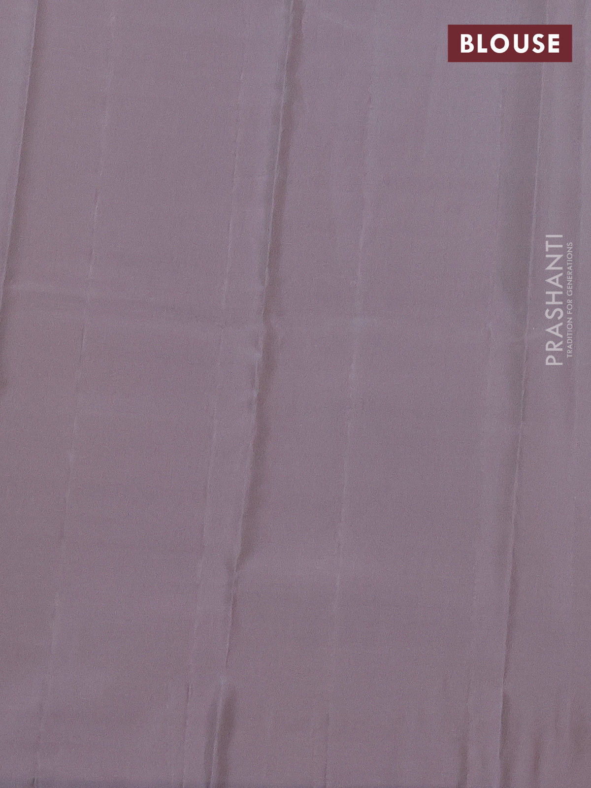 Kanchipuram silk saree lime yellow and grey with copper zari woven buttas in borderless style