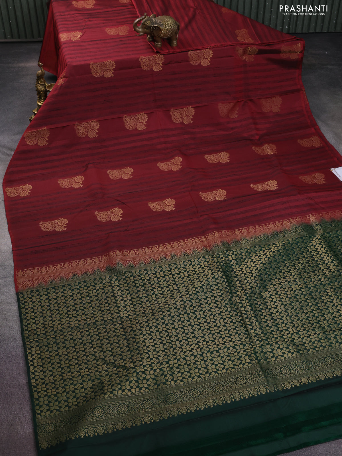 Kanchipuram silk saree maroon and green with zari woven buttas & jute finish in borderless style