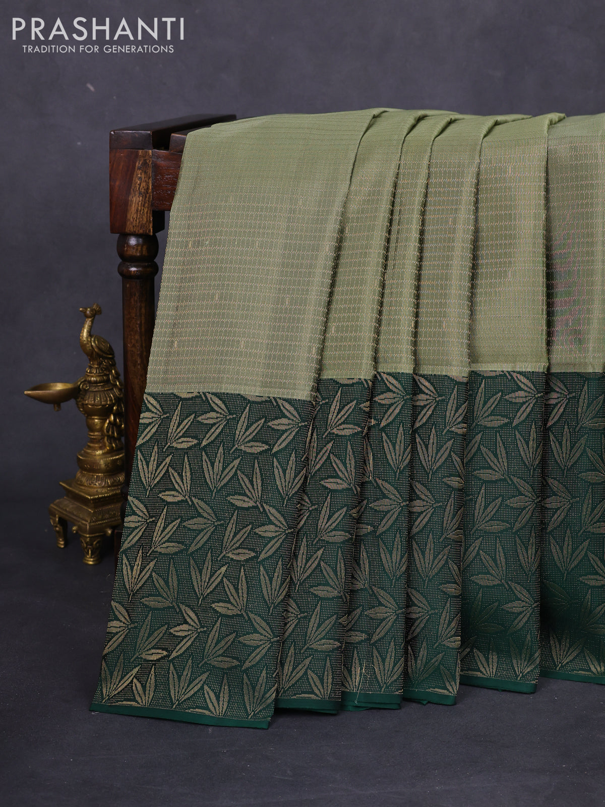 Kanchipuram soft silk saree pastel green and green with allover zari weaves and rich zari woven border