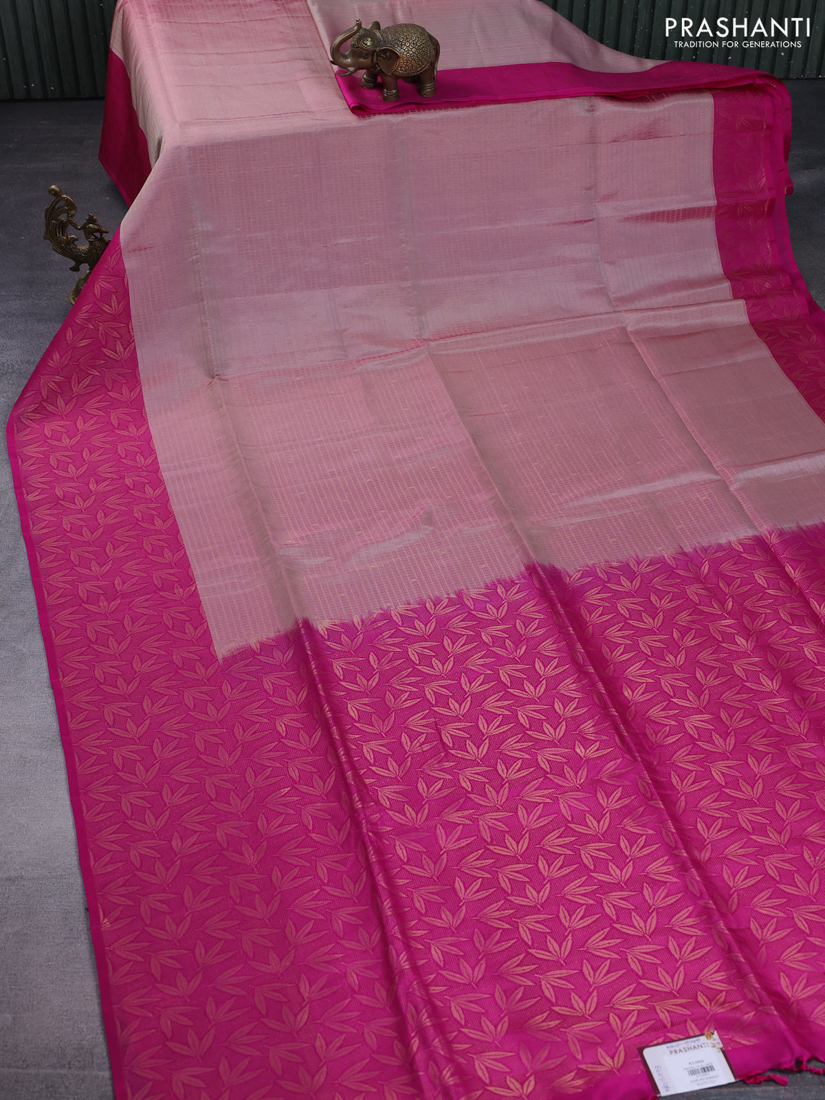 Kanchipuram soft silk saree pastel pink and pink with allover zari weaves and rich zari woven border